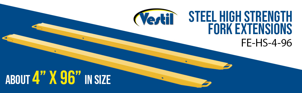 High Strength Fork Extensions are the perfect accessory for new or existing forks. The high strength material provides extra support needed to lift large heavy objects with a fork lift. A 3/16" thickness and included lifting handle for simple placement of the extension onto the lifting fork. These models are almost 40% lighter than standard fork extensions. 4,000 pound capacity is evenly distributed per pair. A powder coat finish is included to diminish scraps and minimize abrasion during use. Baked-in powder coat finish for added toughness.