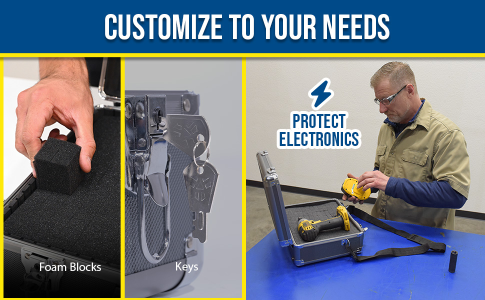 An Aluminum Carrying Case is a great way to store and transfer tools. The aluminum construction is hardy and can withstand the harsh elements of daily use, keeping items safe. With a compact design, the unit is perfect for on the go or left in a stationary place. Sleek smooth finish promotes simple handling.