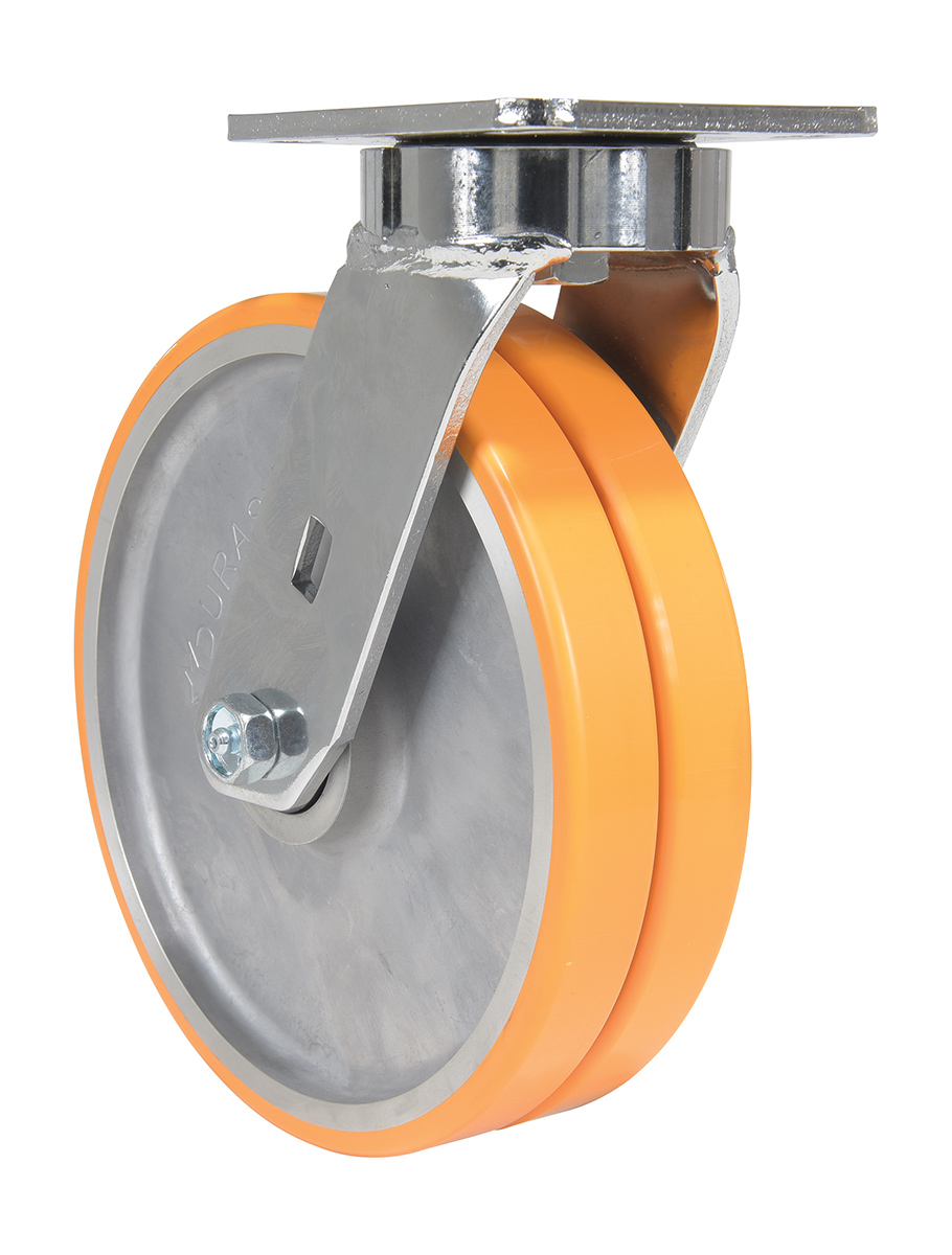 The new x-treme ergo is an industry leader in ergonomic performance. Made of premium grade polyurethane, the independent dual wheels allow for sharp turns with the smallest radius. Coupled with an industry changing double precision raceway, for one of the tightest swivels produced. The 6203 premium precision ball bearings ensure additional strength, ease of mobility, and quietness. The upgraded, lightweight, water resistant aluminum core makes it one of the lightest casters in its class, while standing as the class leader in capacity. Finally, this ultimate caster is topped off with an anti-corrosive, moisture resistant, chrome plated finish.