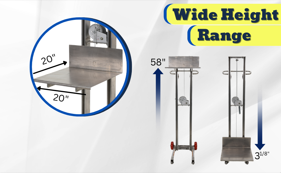 | Steel Lite Load Lift With Winch, Fixed Wheels and Wheel Lock 20 In. x 20 In. Platform 400 Lb. Capacity Blue | Uniform Capacity (lb.): 400 Platform Width (in.): 20 | 107 |