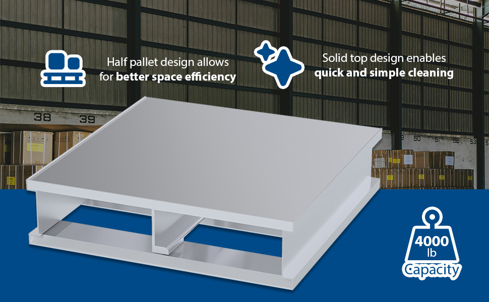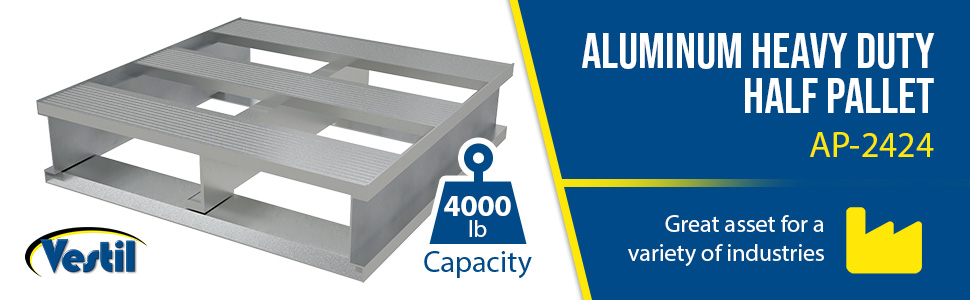 | Aluminum Heavy Duty Solid Top Half Pallet 24 In. x 24 In. x 6 In. 4000 Lb. Silver | Uniform Capacity: 4000 Fork Pocket Width(in.): 22.5625 | 18 |