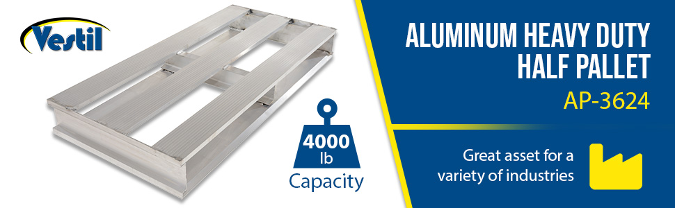 | Aluminum Heavy Duty Solid Top Half Pallet 36 In. x 24 In. x 6 In. 4000 Lb. Silver | Uniform Capacity: 4000 Fork Pocket Width (in.): 16-5/16 | 26 |