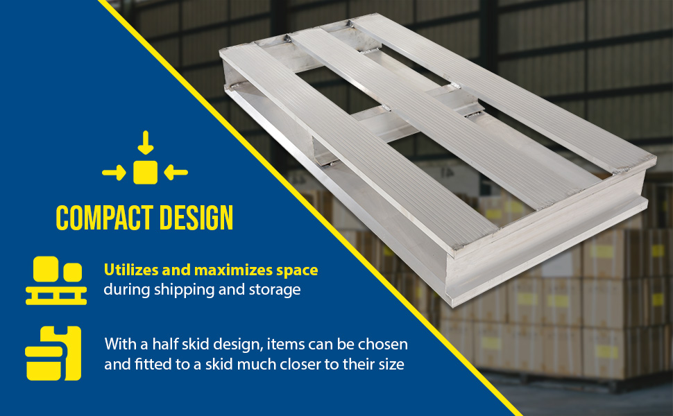| Aluminum Half Skid 24 In. x 48 In. x 3-3/4 In. 4,000 Lb. Capacity Silver | Uniform Capacity: 4000 Fork Pocket Width(in.): 36.375 | 15 |