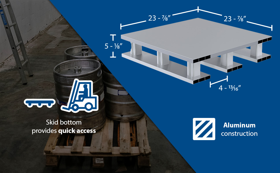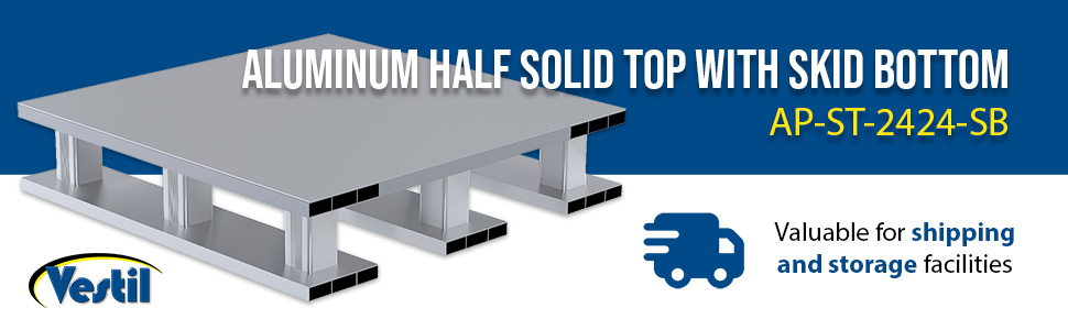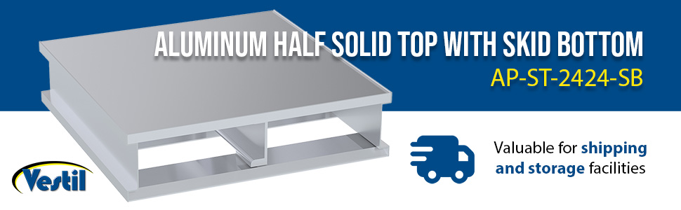 | Aluminum Half Solid Top with Skid Bottom 24 In. x 24 In. x 5-1/16 In. 4000 Lb. Capacity Silver | Uniform Capacity: 4000 Fork Pocket Width(in.): 19.5625 | 17 |