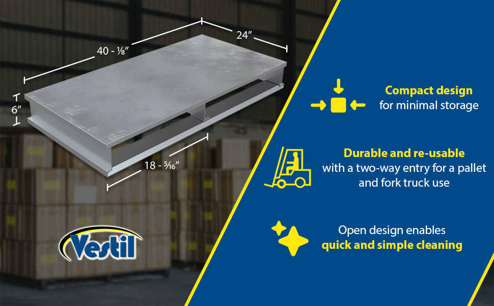 | Aluminum Heavy Duty Half Pallet 24 In. x 40 In. x 6 In. 4000 Lb. Capacity Silver | Uniform Capacity: 4000 Fork Pocket Width(in.): 16.5625 | 21 |