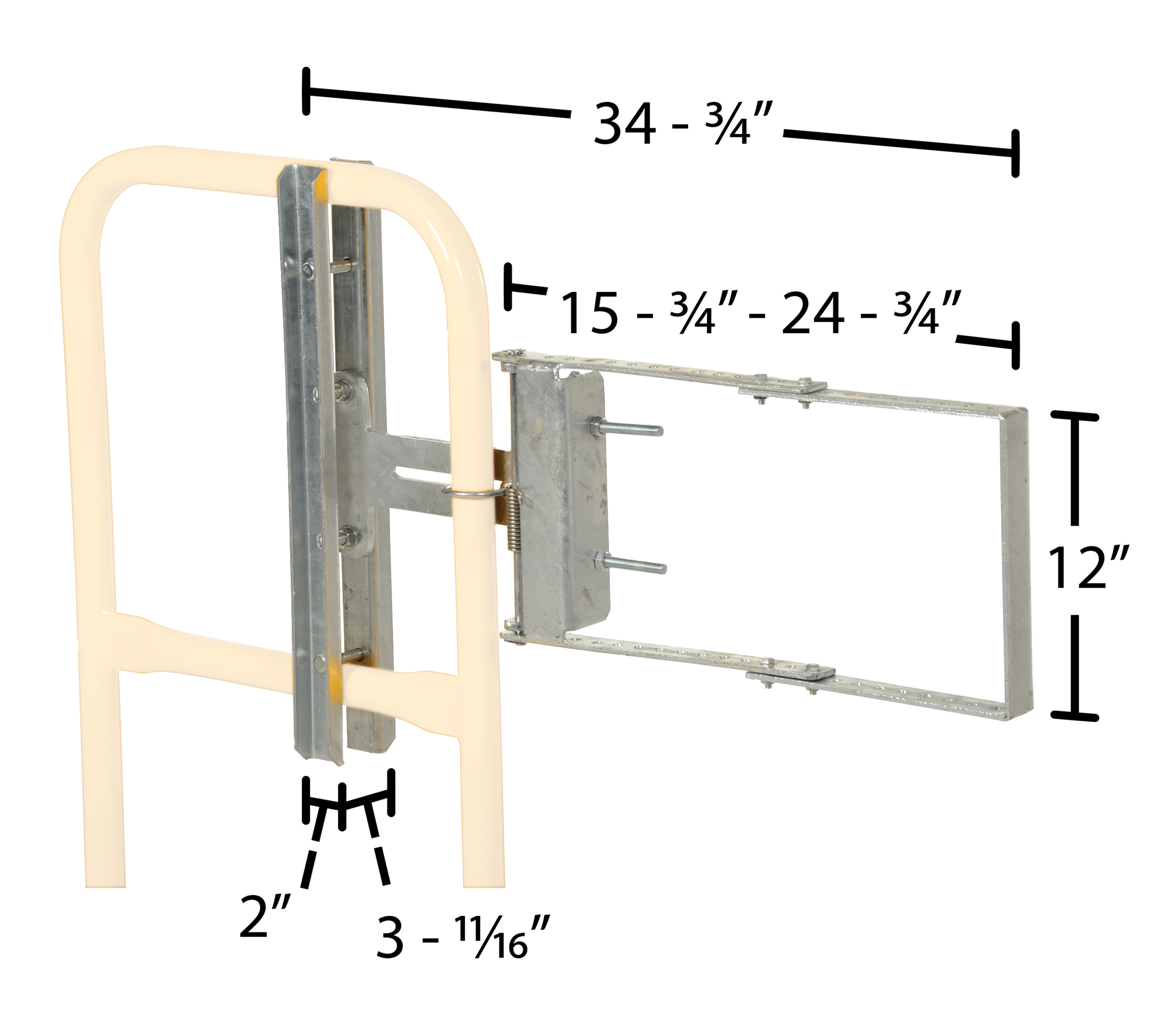 | Mount Rail Spacing Center to Center (in.): 10 to 21 | Gate Height (in.): 12 | OSHA: 1910.23A |