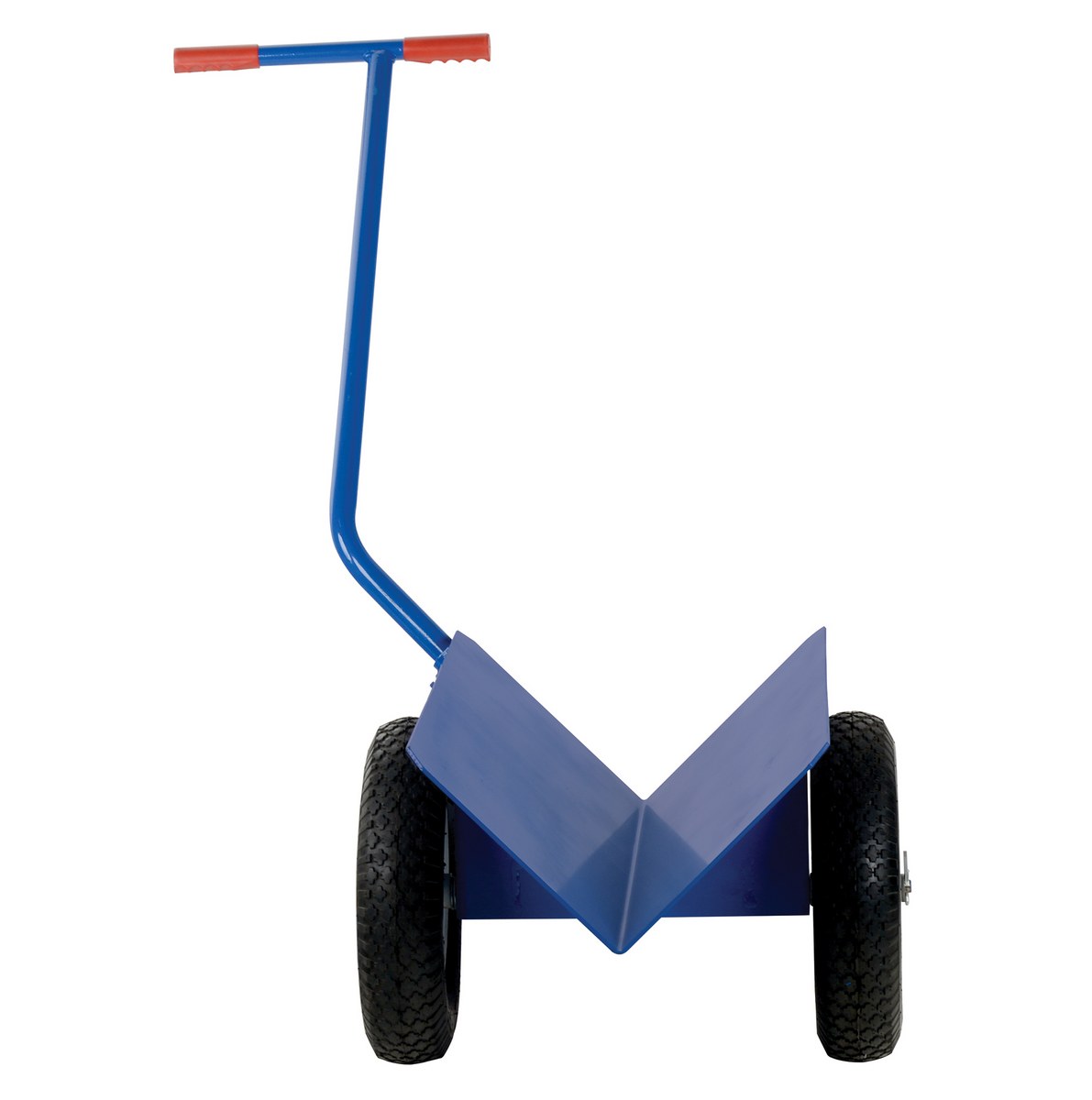 Pipe and tubing measuring up to 20 feet long may now be easily moved by one person. The V-Groove design keeps loads at the horizontal center of gravity for maximum stability and safety. Large 16" diameter tires. Includes a 38" handle height for added maneuverability. Steel construction. Unit has a blue powder coated finish for baked-in toughness.