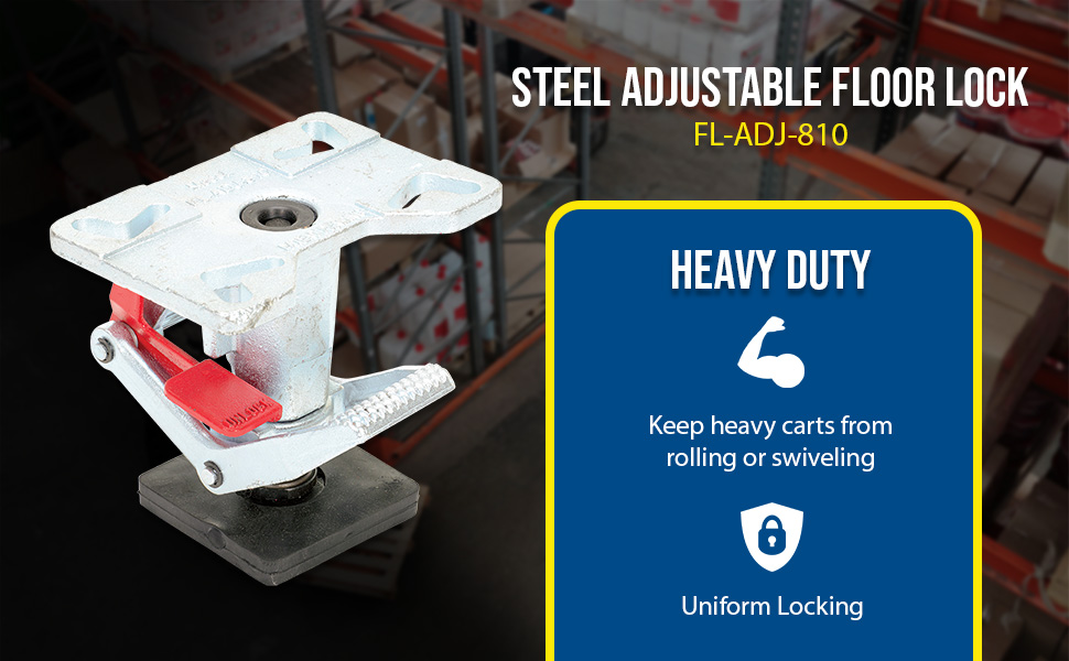 FL-ADJ-810 FL-ADJ-810Steel Adjustable Floor Lock 8-1/4 to 11-1/2 In. Height SilverUsed with Caster Size (in. - in.): 6 to 8