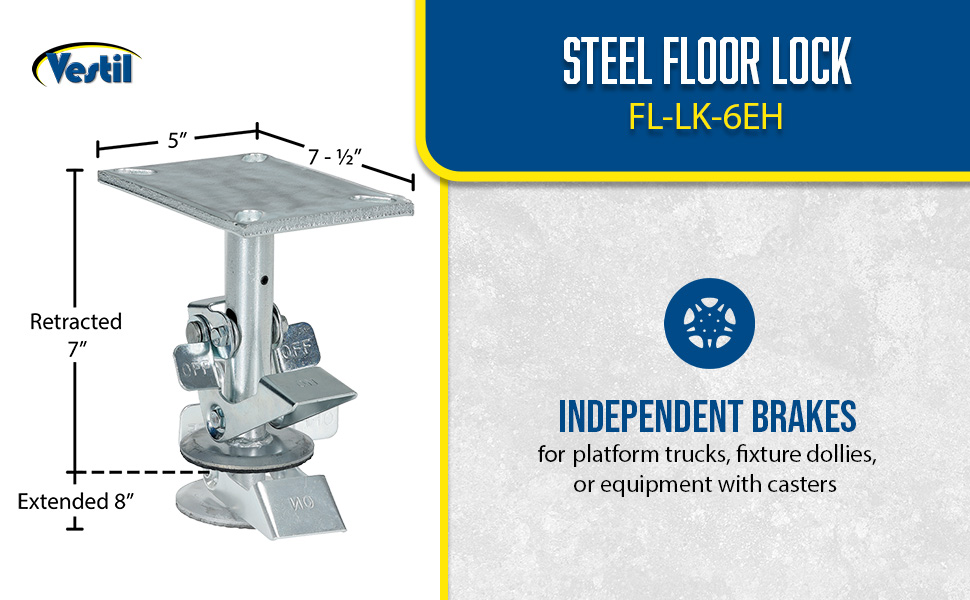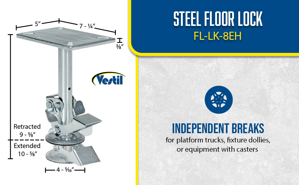 | Steel Top Mount Floor Lock 4-7/8 to 5-5/8 In. Height Silver 1,200 Lb. Capacity | Caster Diameter (in.): 4 Mount Height (in.): 5-5/8 | 4 |