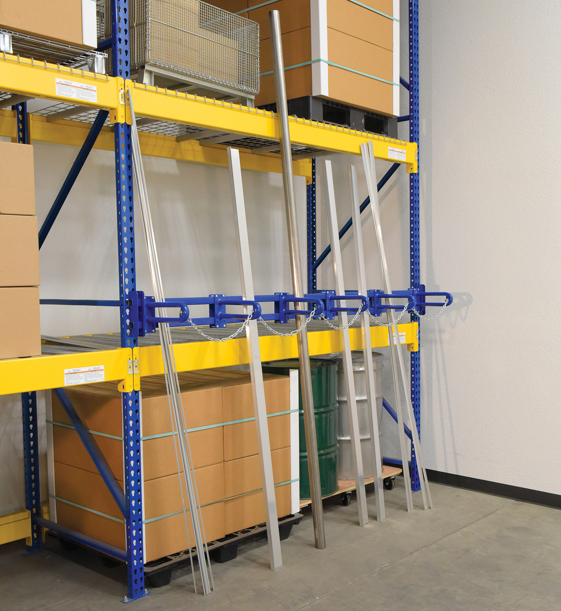 A vertical bar storage rack can transform a pallet rack into the perfect place for compact storage. With a simple bolt on installation, the rack can be mounted to a storage rack upright in a short period of time. Constructed of steel, the smooth rounded finish keeps abrasion to materials to a minimum. The complete unit is comprised of five bays for better organizing products that are different in size, shape or design. Each rack station includes a pre drilled chain slot to create a barrier against any resources that may tip or slide out of position. Galvanized chains and installation hardware are included.