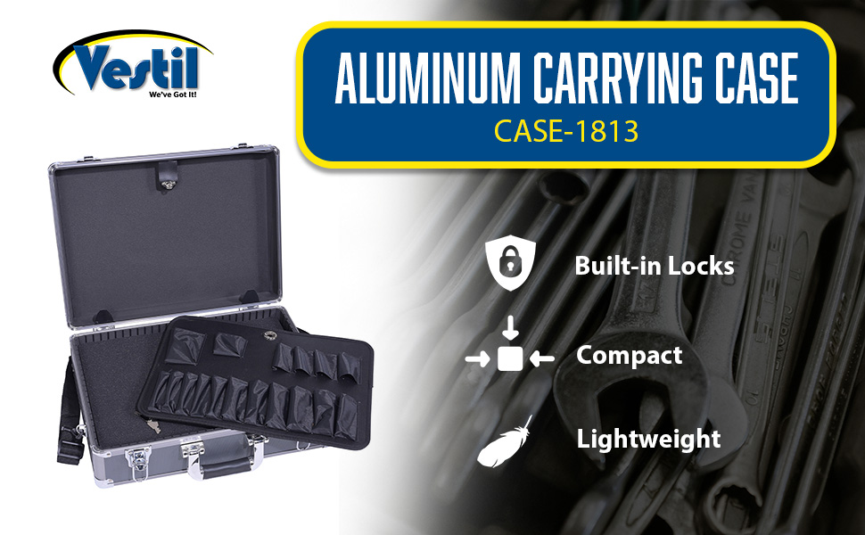 An Aluminum Carrying Case is a great way to store and transfer tools. The aluminum construction is hardy and can withstand the harsh elements of daily use, keeping items safe. With a compact design, the unit is perfect for on the go or left in a stationary place. Sleek smooth finish promotes simple handling.