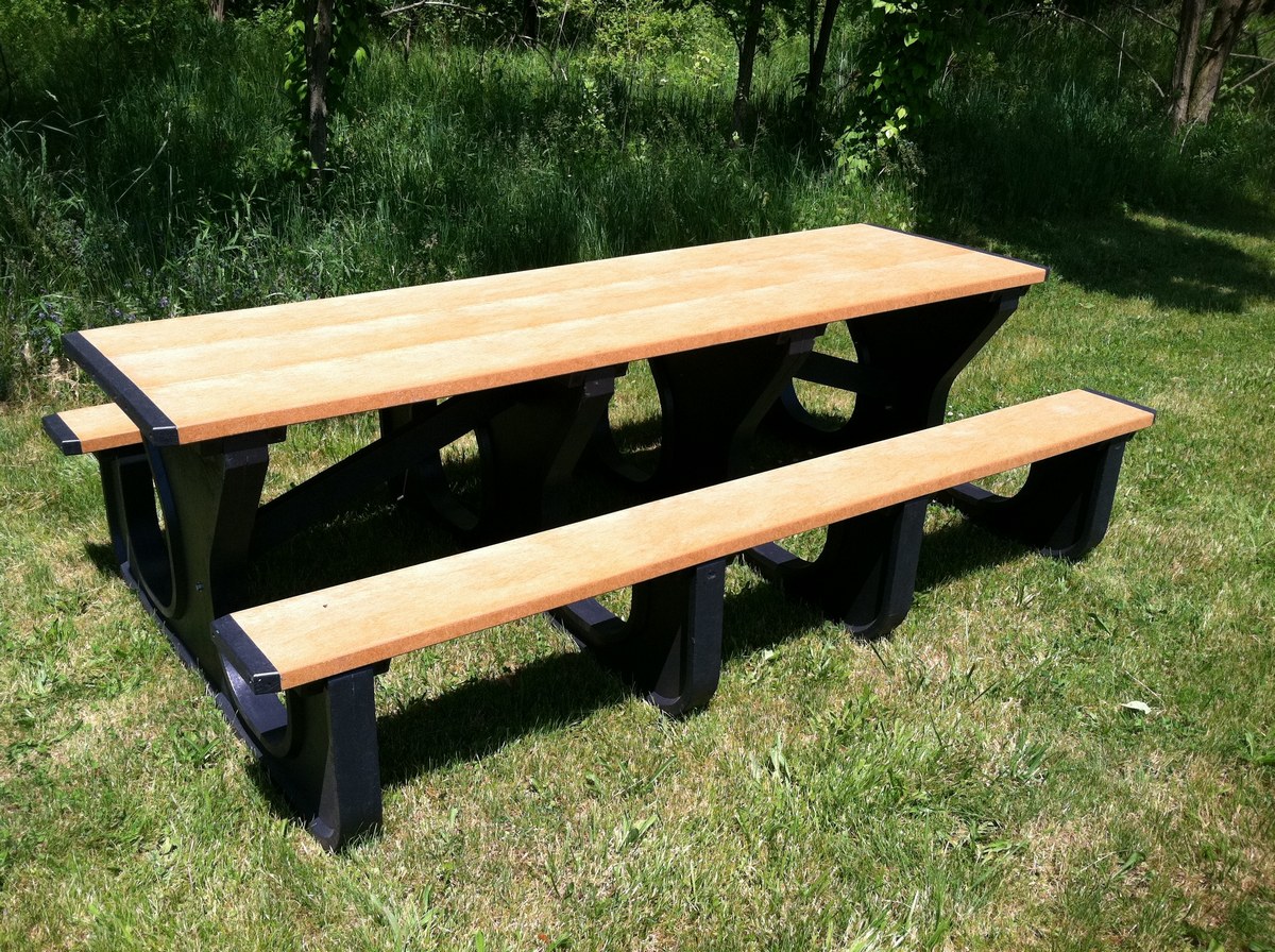 | Recycled Plastic Picnic Table Rectangle Walk Thru 28 In. x 96 In. 2000 Lb. Capacity Black Leg Cedar Top | Uniform Capacity (lb.): 2000 Table Top Width/Length (in.): 28 x 96 | 405 |