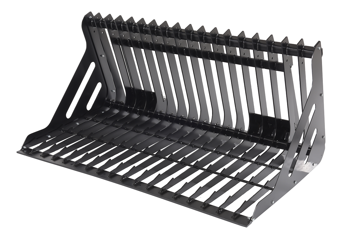 A skid steer rock grater bucket works wonders in the landscaping and construction industries. With a low profile design, along with an immense structural volume, it makes loading and unloading heavy rocks as easy as ever. With a simple attachment, connecting to an existing skid steer is as quick as can be. Once in place, the bar style bottom platform is ready to transport heavy loads and minimize manual labor.