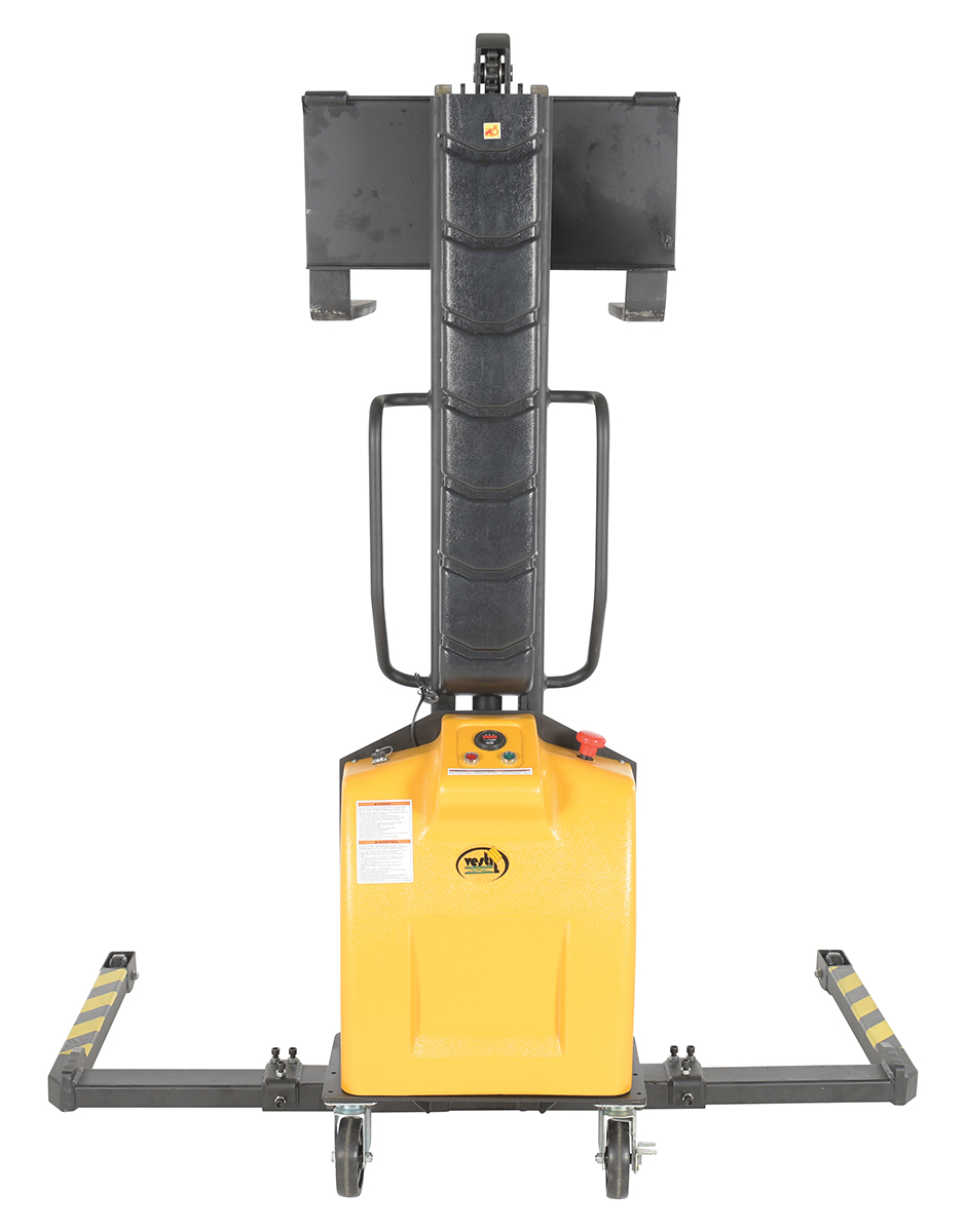 Narrow Mast Semi-Electric Stackers with Powered Lift will raise and lower loads quickly and easily. Material push operation stackers are made using high quality material and parts. All models are easily maneuverable using the standard steering handle. SLNM stackers are highly efficient and durable. Semi-electric stackers use one 12V battery. Integral battery charger and battery level gauge.