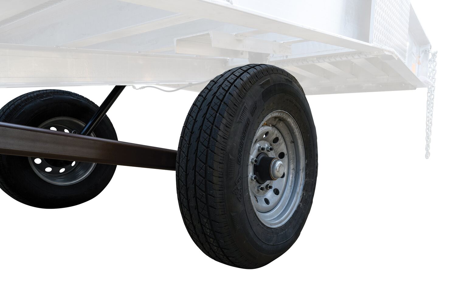 • Overlap style lip with safety chains secures ramp to trailer