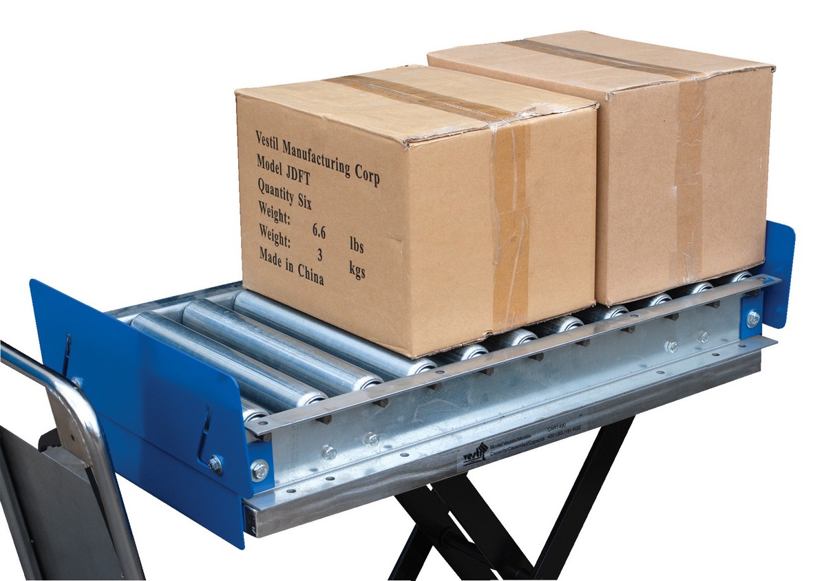Provide smooth and easy flow from cart to workstation. Attaches to any scissor table, cart, or work bench with a deck length of 32". Allows you to position objects easily. Features retractable end stops so items won't slide off during transit. Ideal for use at feed tables for sheet metal working machines, press brakes, and machine centers. Adds 3-3/4" to lowered and raised height of cart. Fits model CART-750-TS and CART-1000-TS.