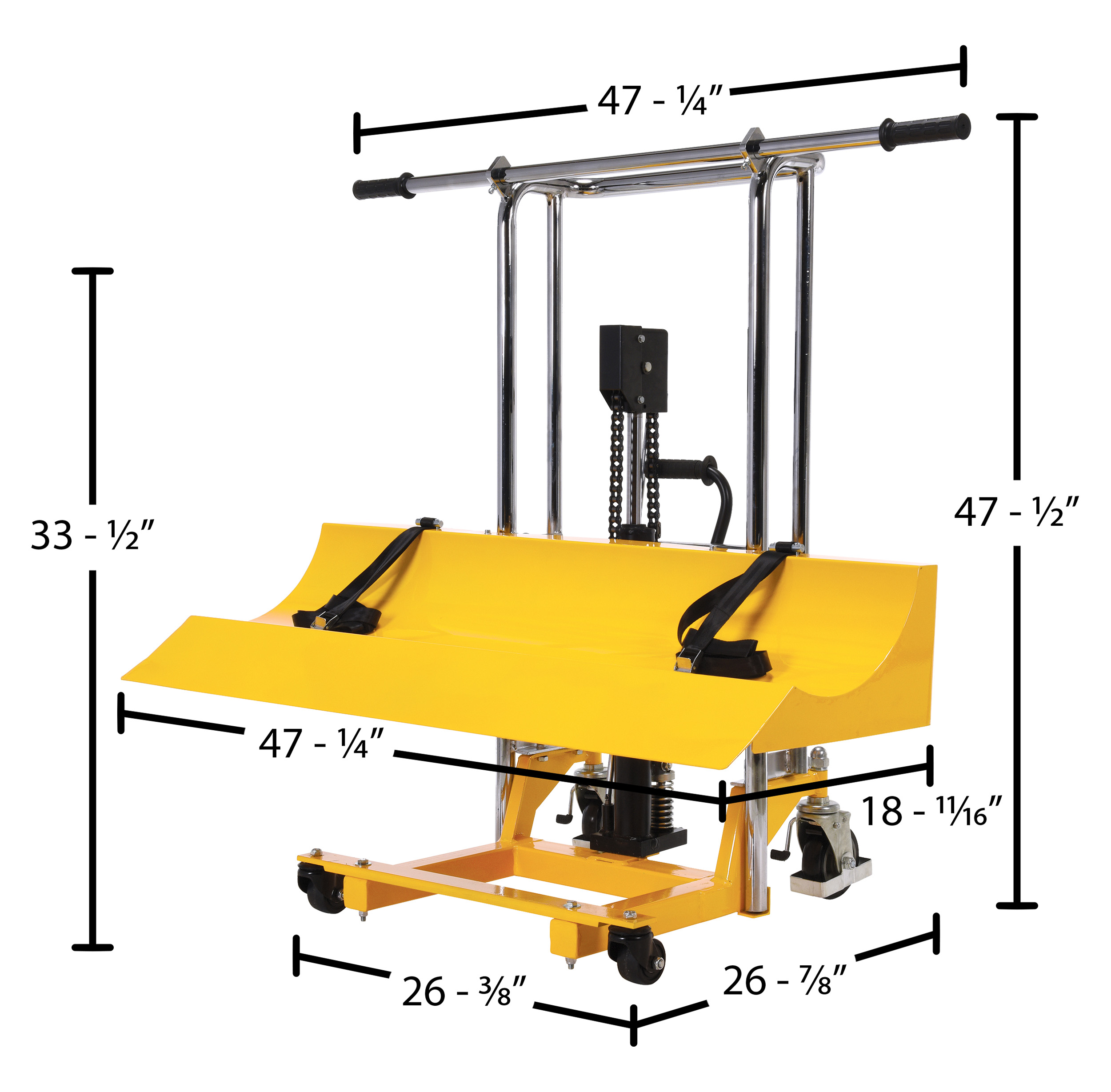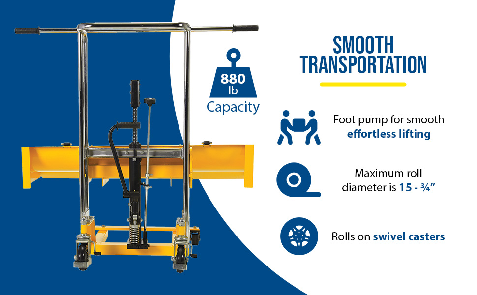 HYD-ROLL-47 HYD-ROLL-47Steel Roll Lifter Transporter 15-3/4 In. Roll Diameter 880 Lb. Capacity YellowUniform Capacity (lb.): 880