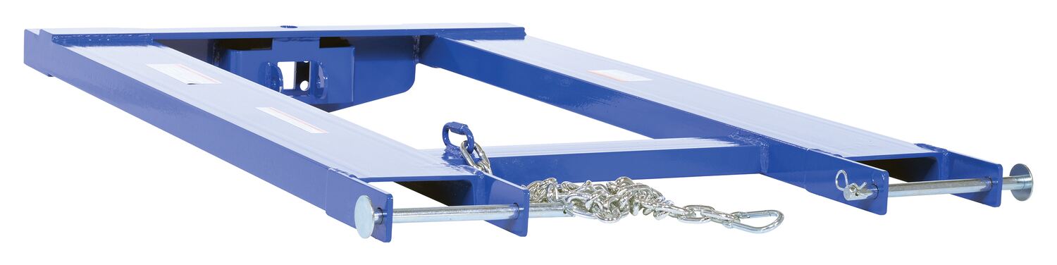 Convert your fork truck into a tow truck for moving trailers and other portable equipment. Simple design slides onto forks and secures into place with pin style tine locks and a safety restraint. Welded steel construction with blue baked-in powder-coat finish for added toughness. 5"W x 2"H usable fork pockets. Optional pintle hook, tow balls, fifth wheel trailer spotter, lifting hooks and hitch available. Bolt on design. Never exceed the 4,000 lb. capacity of the hook base. An attachment does not increase the total capacity of the unit.