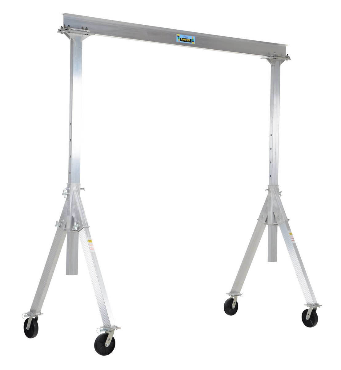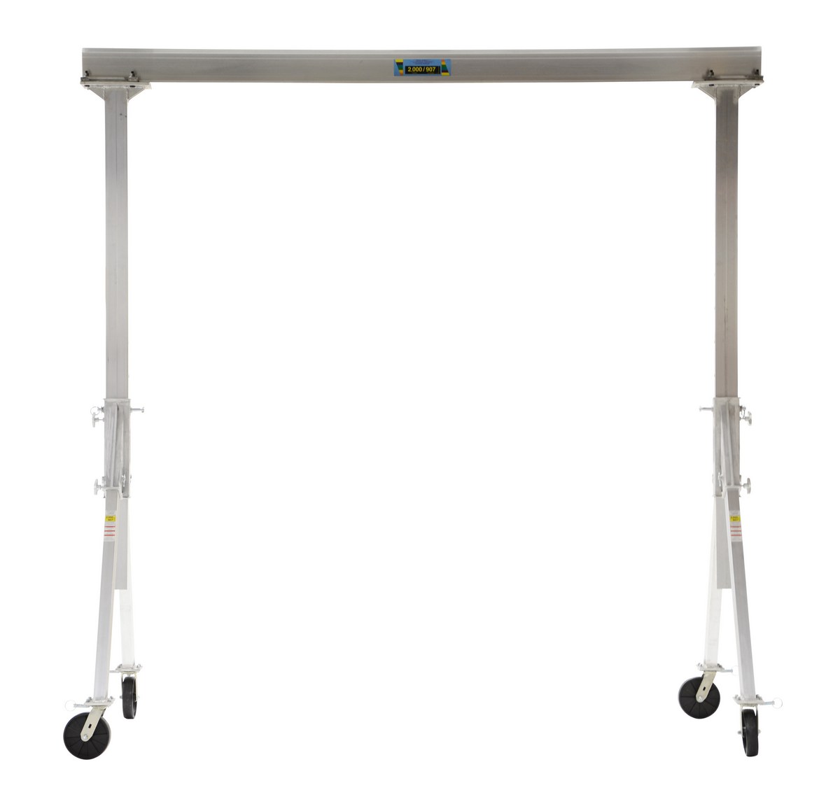 | Aluminum Adjustable Height Gantry Crane with Glass Filled Nylon Casters 8 Ft. Wide x 12 Ft. Max Usable Height 2,000 Lb. Capacity Silver | Uniform Capacity (lb.): 2000 Overall I-Beam Length (ft.): 8 | 298 |