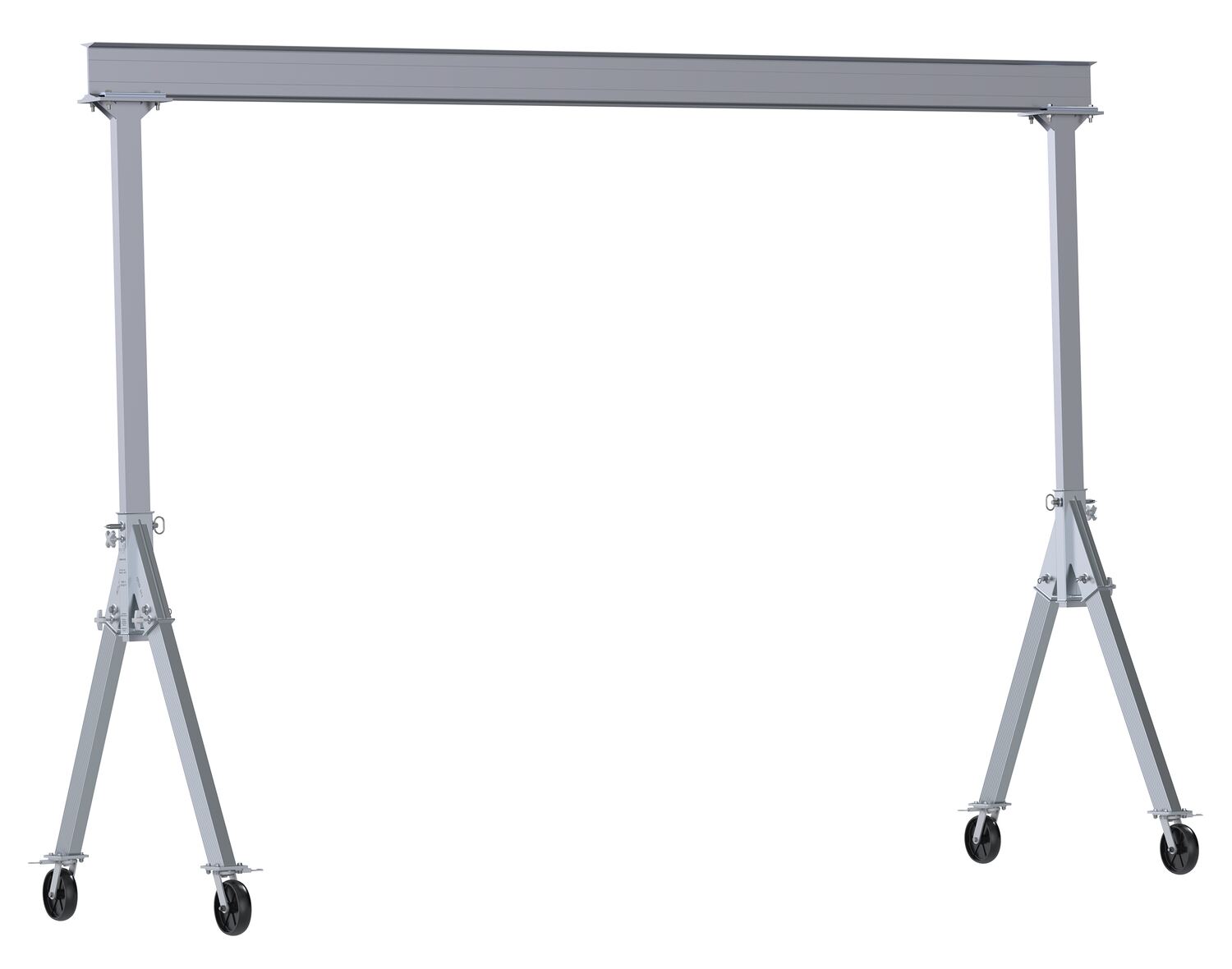 The Fixed Height Aluminum Gantry Cranes are ideal for variety of industries including maintenance and production. The aluminum design is easily manageable and can be simply assembled for immediate use. A fixed height is perfect for working in a permanent or semi-permanent environment where the surrounding seldom change. Casters provide a smooth way to transfer units when unloaded and if changing locations is needed. Unit comes standard four (4) position locking swivel casters with roller bearings (2K units have glass filled nylon casters. 4K-6K units have phenolic casters). A strong construction allows for long lasting strength through the harshest of environments. Hoists & Trollies can be ordered seperately.