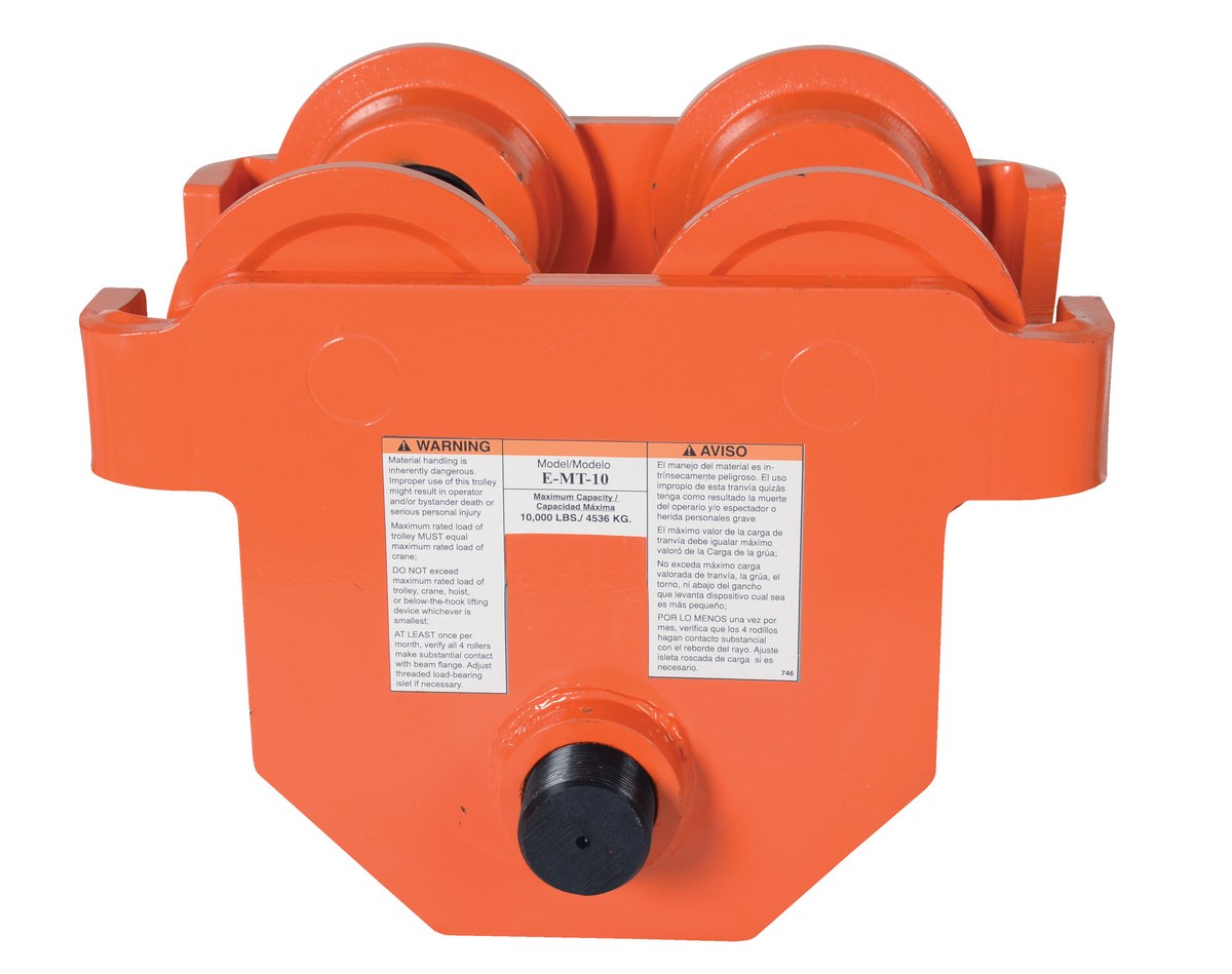 E-MT-10 E-MT-10Steel Push Eye Manual Trolley 10000 Lb. Capacity OrangeUniform Capacity (lb.): 10,000