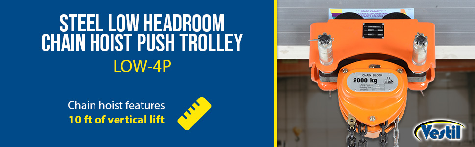 LOW-4P LOW-4PSteel Low Headroom Chain Hoist Push Trolley 14 In. x 11-1/2 In. x 14 In. 4,000 Lb. Capacity OrangeUniform Capacity (lb.): 4,000