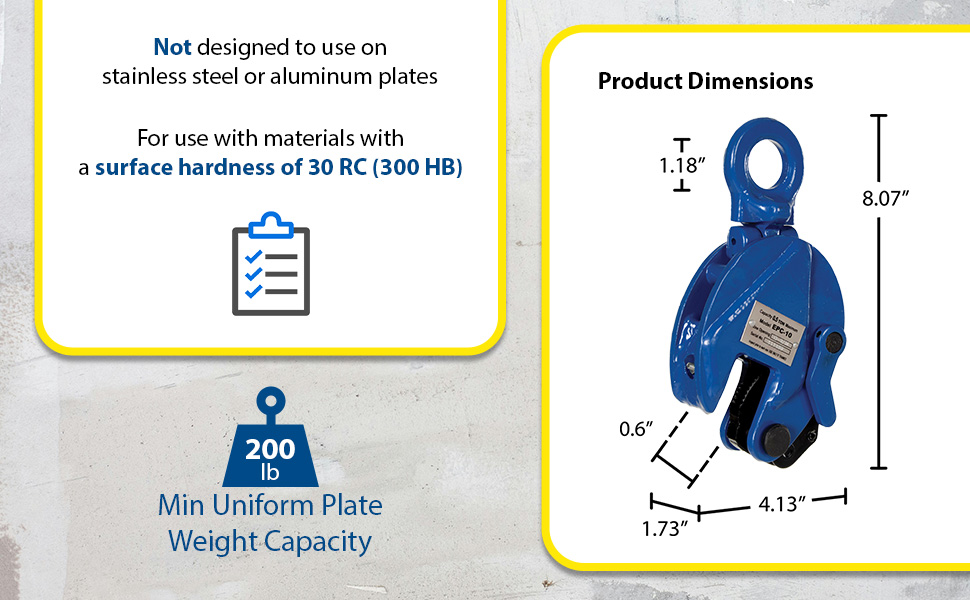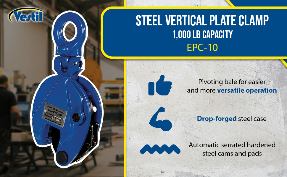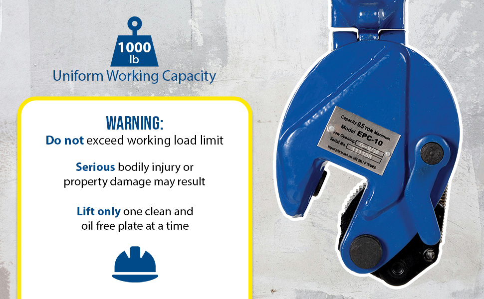 EPC-10 EPC-10Steel Vertical Plate Clamp 1,000 Lb. Capacity BlueMin Uniform Plate Weight (lb.): 200