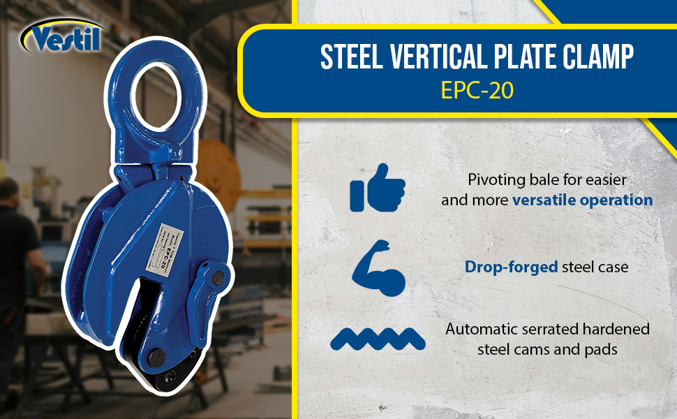 EPC-20 EPC-20Steel Vertical Plate Clamp 2,000 Lb. Capacity BlueMin Uniform Plate Weight (lb.): 400