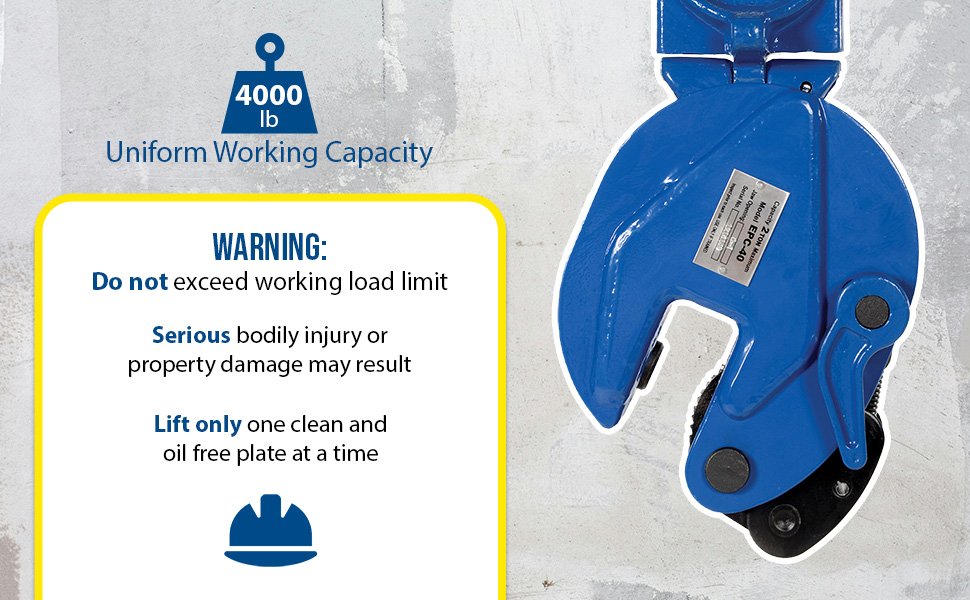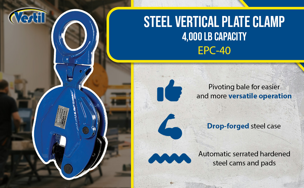 EPC-40 EPC-40Steel Vertical Plate Clamp 4,000 Lb. Capacity BlueMin Uniform Plate Weight (lb.): 800