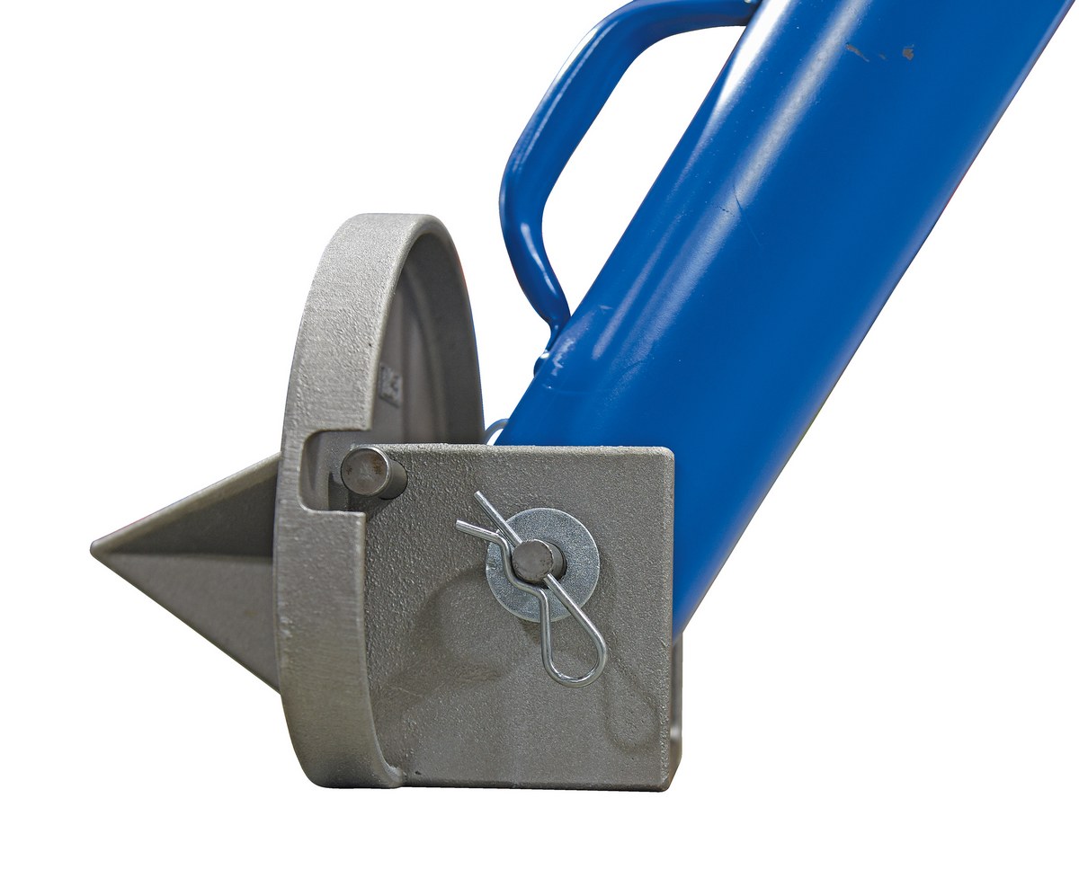 This portable steel or aluminum tripod hoist stand provides a convenient and economical lifting support stand. Available in adjustable or fixed height versions. The unit folds for convenient portability and storage. Great for access to confined spaces. Features padded pivots for smooth or spiked feet. The spiked feet are designed to be used in rough terrain. A swivel eye bolt and safety chain are standard. Chain hoist not included. Meets ANSI safety requirements for confined space Z117.1.