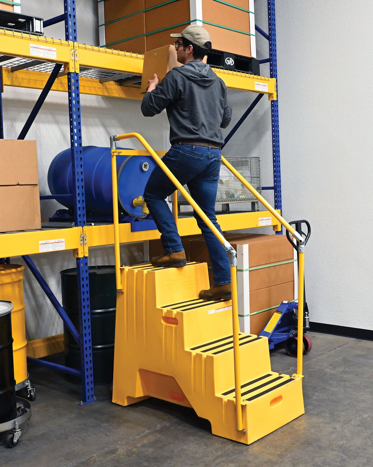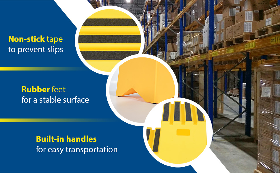When items are out of reach, do not strain, simply step up with one of our Polyethylene Step Stools. The two and three step units have rear opening access storage compartments. The four step unit comes with handrails. All models have rubber feet and a non-skid tape surface. Hand holes are standard for easy one person transportation.