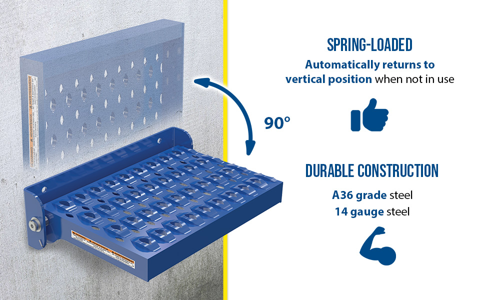 SFS-149-SL SFS-149-SLSteel Serrated Fold Up Step Spring Loaded 10-1/4 In. x 15-9/16 In. x 4 In. 350 Lb. Capacity BlueUniform Capacity (lb.): 350
