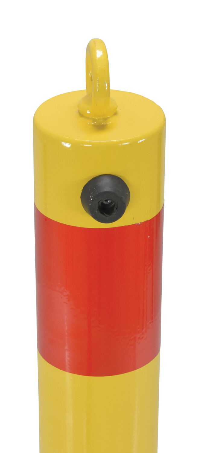 Ideal for vehicle access control. These heavy duty bollards feature integrated locking and an easy to operate cam-lock. Unit secures in open position via internal lock. Two (2) keys included. Four (4) 3/8" x 3" concrete anchors included for securing bollard to concrete. Two (2) wrap around reflectors adhere to the baked-in powder-coated toughness or stainless steel finish. The anti-tamper design and cast steel covering foot is made in a mold, therefore there are no welds. Can be used in conjunction with our Fixed Height Bollards.