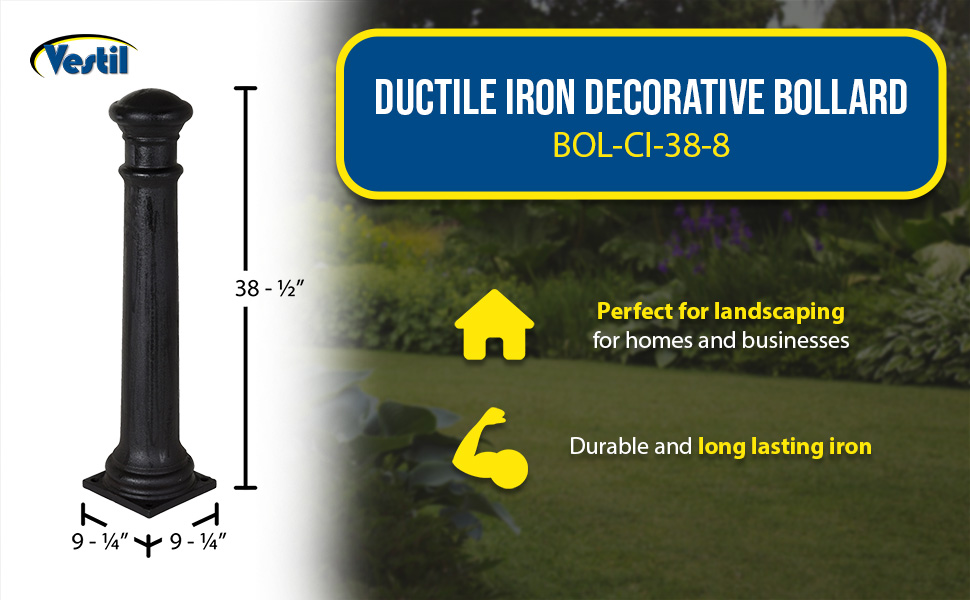 BOL-CI-38-8 BOL-CI-38-8Ductile Iron Decorative Bollard 38 In. x 8 In. BlackTop Diameter (in.): 8-1/2
