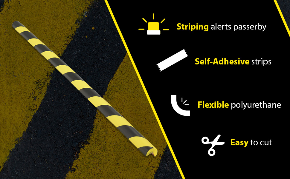Versatile foam edge guards provided added protection when necessary. Each guard is manufactured from flexible foam that conforms to slightly irregular angles and surfaces Black and yellow alert striping. Sold in lengths of 40", easy to cut to custom lengths. Mounts with self-adhesive strips. Includes double sided tape for adhering.