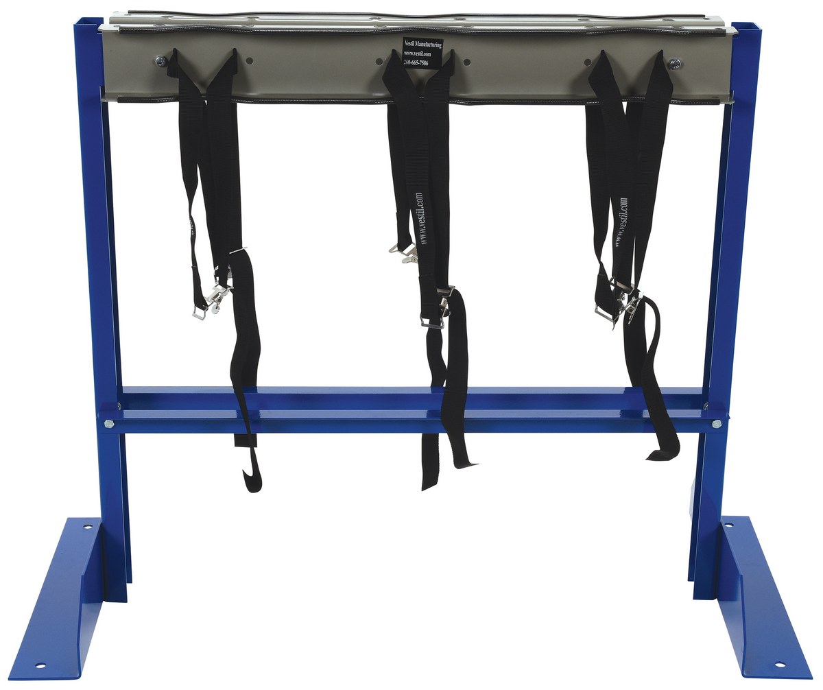 Our Cylinder Bracket Stands allow for storage of cylinders in the vertical position. The straps are included for securing the cylinders to the stand. The CB-ST models have pre-drilled mounting holes for attachment to the floor (floor mounting hardware is not included). Stands are powder-coated blue and steel brackets feature a gray painted finish. Assembly hardware included.