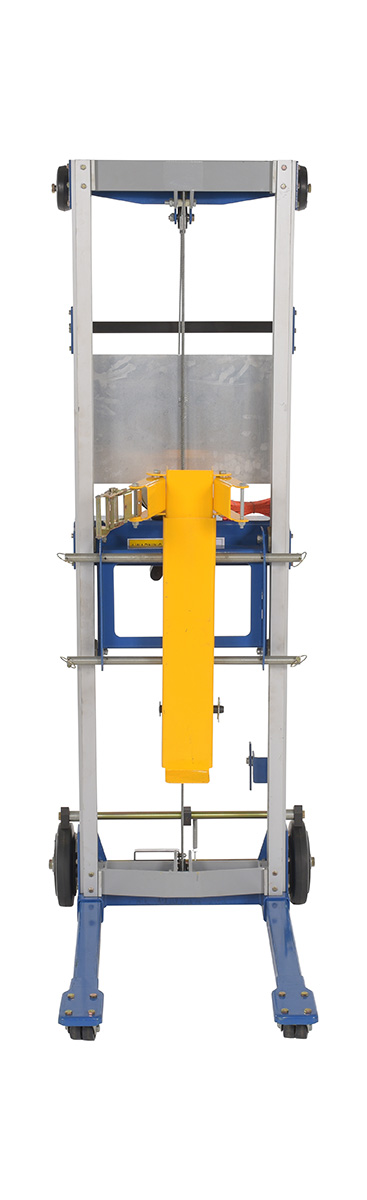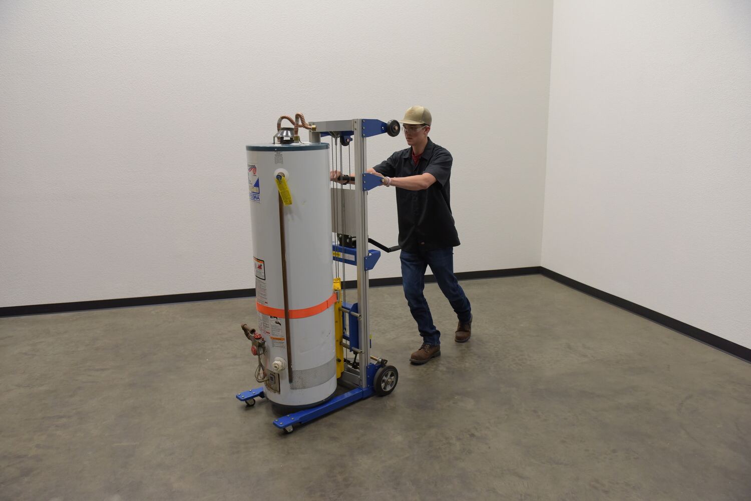 Steel Manual Winch Heater Tank Lift Truck 300 Lb. Capacity Blue/Silver/YellowWhen a heater tank needs to be lifted look no further than the heater tank lift truck. The lift is compact and designed to lift tanks in a variety of sizes. It's constructed of durable steel with a powder coated finish for long lasting durability. Lifting operation is utilized by a hand-crank winch for perfect placement.
