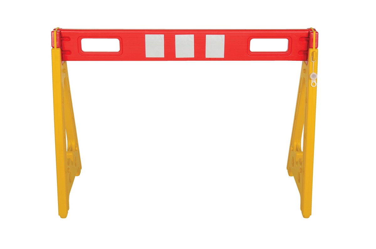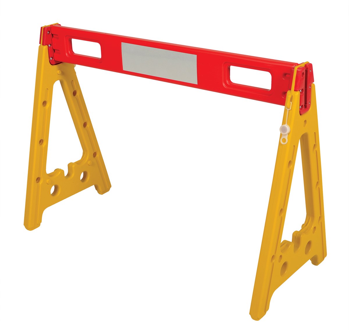 Plastic A-Frame Barricade 44-5/8 In. x 19-1/2 In. x 31-3/4 In. YellowBlock aisle ways, parking spaces, or other unauthorized access areas with an A-Frame barricade. It's designed for quick set up and convenient storage. The A-Frame barricade can be filled with water or sand for increased stability. Features three (3) reflectors. Easy to assemble/disassemble and store. Anchoring is easy with pre-drilled holes.