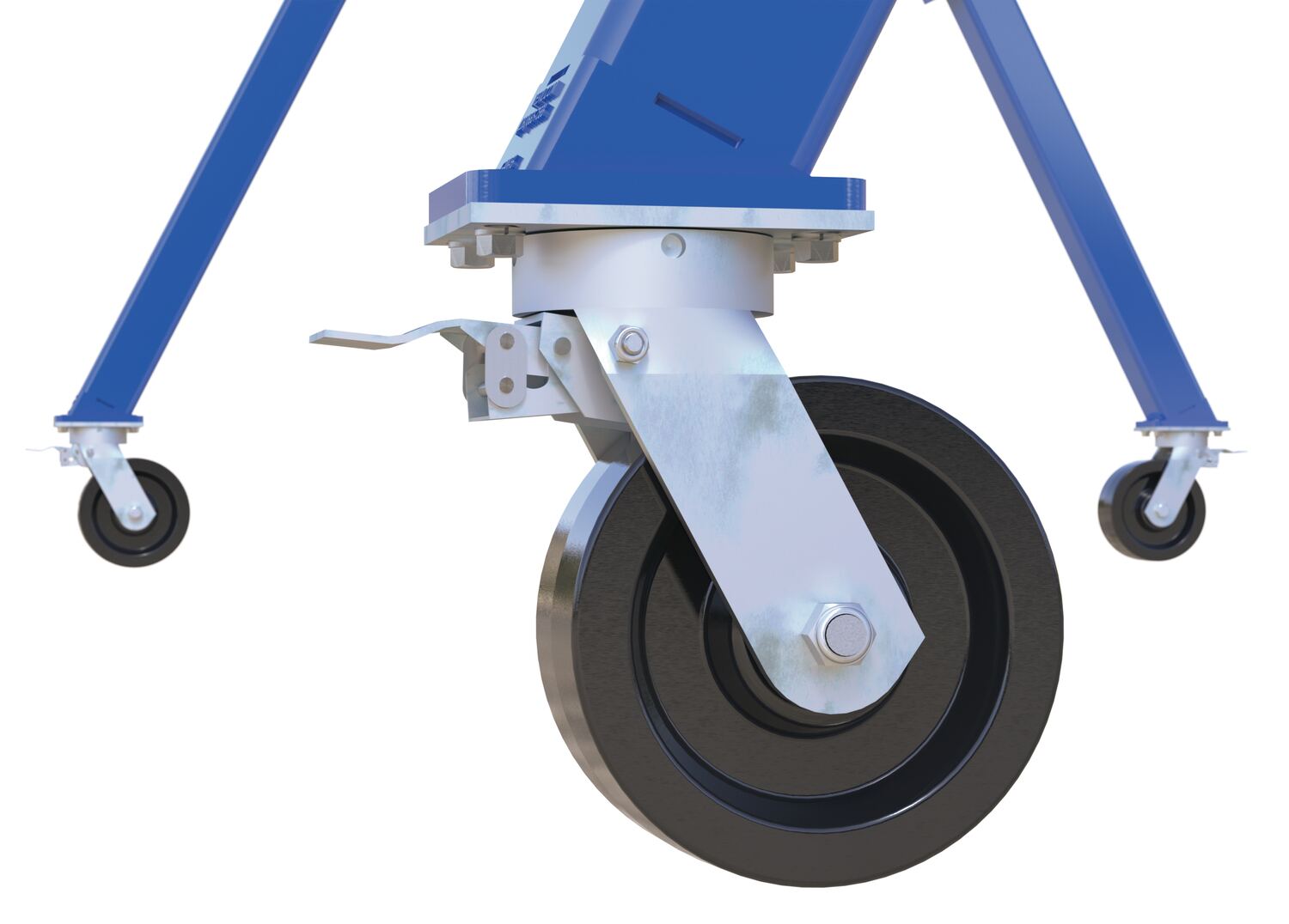 Steel Adjustable Height Gantry Crane with Total Locking Phenolic Casters 10 Ft.Wide x 12 Ft. Max Usable Height 6,000 Lb. Capacity BlueThe adjustable height steel gantry crane is designed for transporting and positioning materials along the beams length. The cranes beam height can be adjusted to better conform to the working conditions making it both ergonomically friendly and cost effective. Facilitate easy mobility from one area to another with total locking casters. Height is adjustable in 6" increments. Do not move units while loaded. Hoist and trolley can be ordered separately. A painted blue finish protects the unit from rust. Designed for semi-permanent or permanent applications.