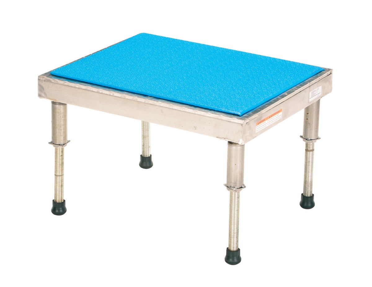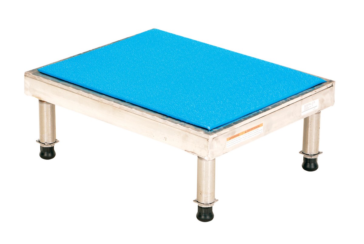 Aluminum Adjustable Work-Mate Stand 24 In. x 19 In. x 9-1/2 In. 500 Lb. Capacity SilverThe adjustable work-mate stand minimizes fatigue by elevating workers to heights that are comfortable and ergonomically correct. Especially useful when multiple shift employees operate the same piece of machinery. The ergonomic matting deck style provides comfort for the operator who stands all day. The height of each leg can be adjusted individually to ensure proper working height.