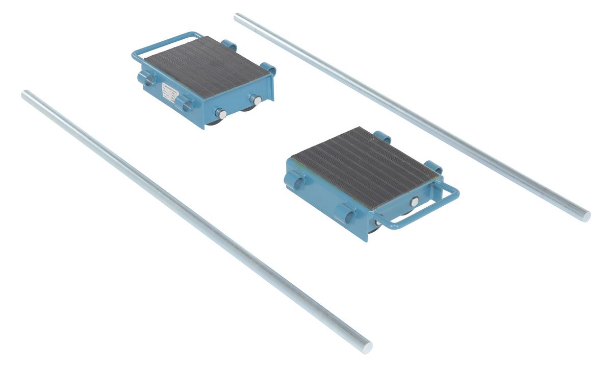 Steel Adjustable Machinery Skates 10-1/2 In. x 12-13/16 In. x 4-3/8 In. 6 Ton Capacity BlueThese machinery skates are designed to move heavy equipment and machinery. Nylon wheels are strong and will not mark floors. The top of each skate includes a rubber surface for extra grip. Steel construction with handle to carry and position. The adjustable skate includes two (2) dollies connected with a two (2) slider bars to form one larger dolly. Slider bar allows for adjustable overall dolly width. Designed primarily for moving in straight lines.
