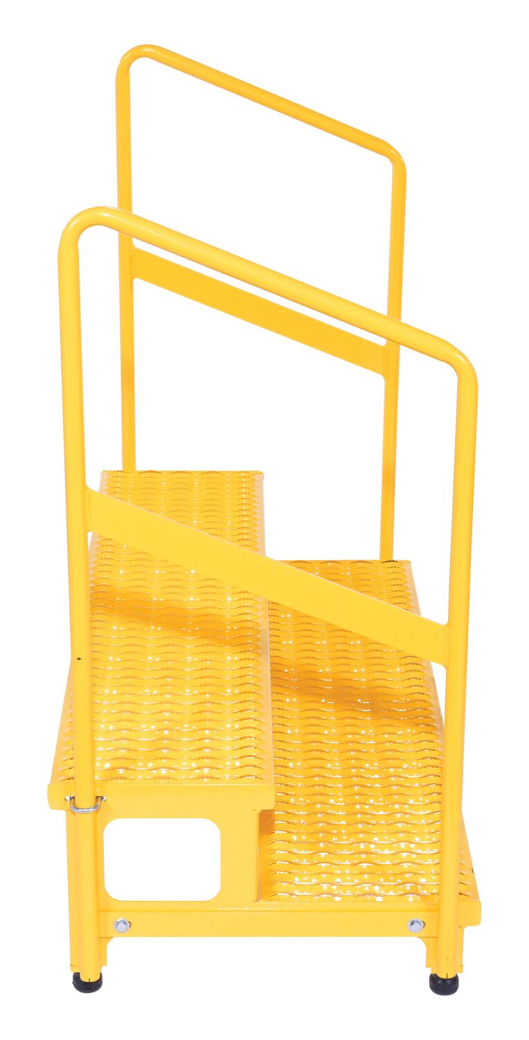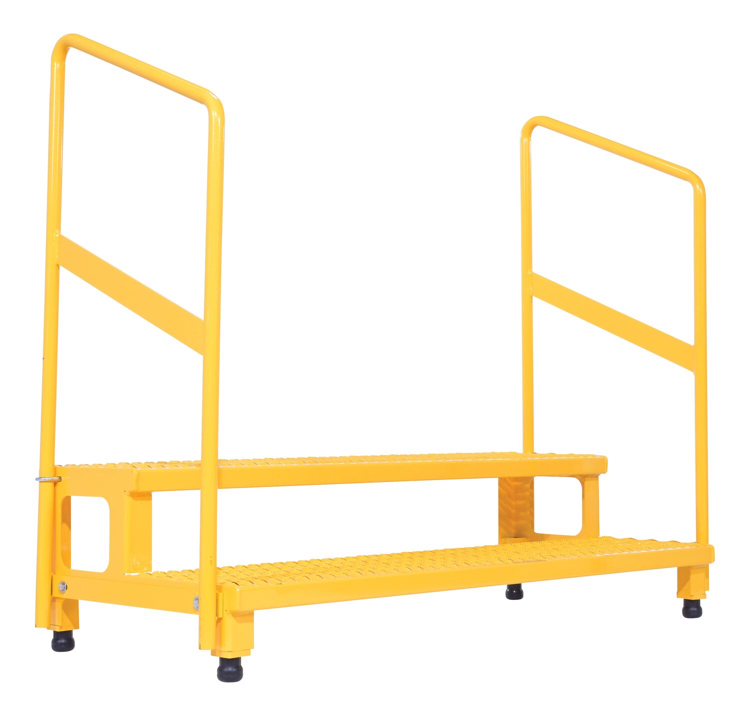 Steel Adjustable Step Mate Stand 2 Step with Handrails 22-7/8 In. x 50-1/2 In. x 43-1/8 In. 500 Lb. Capacity YellowThe adjustable step-mate stand can be used as either a comfortable worker platform or a semi-permanent step. The serrated surface ensures safe footing. The legs adjust individually by screwing them into or out of the leg base.