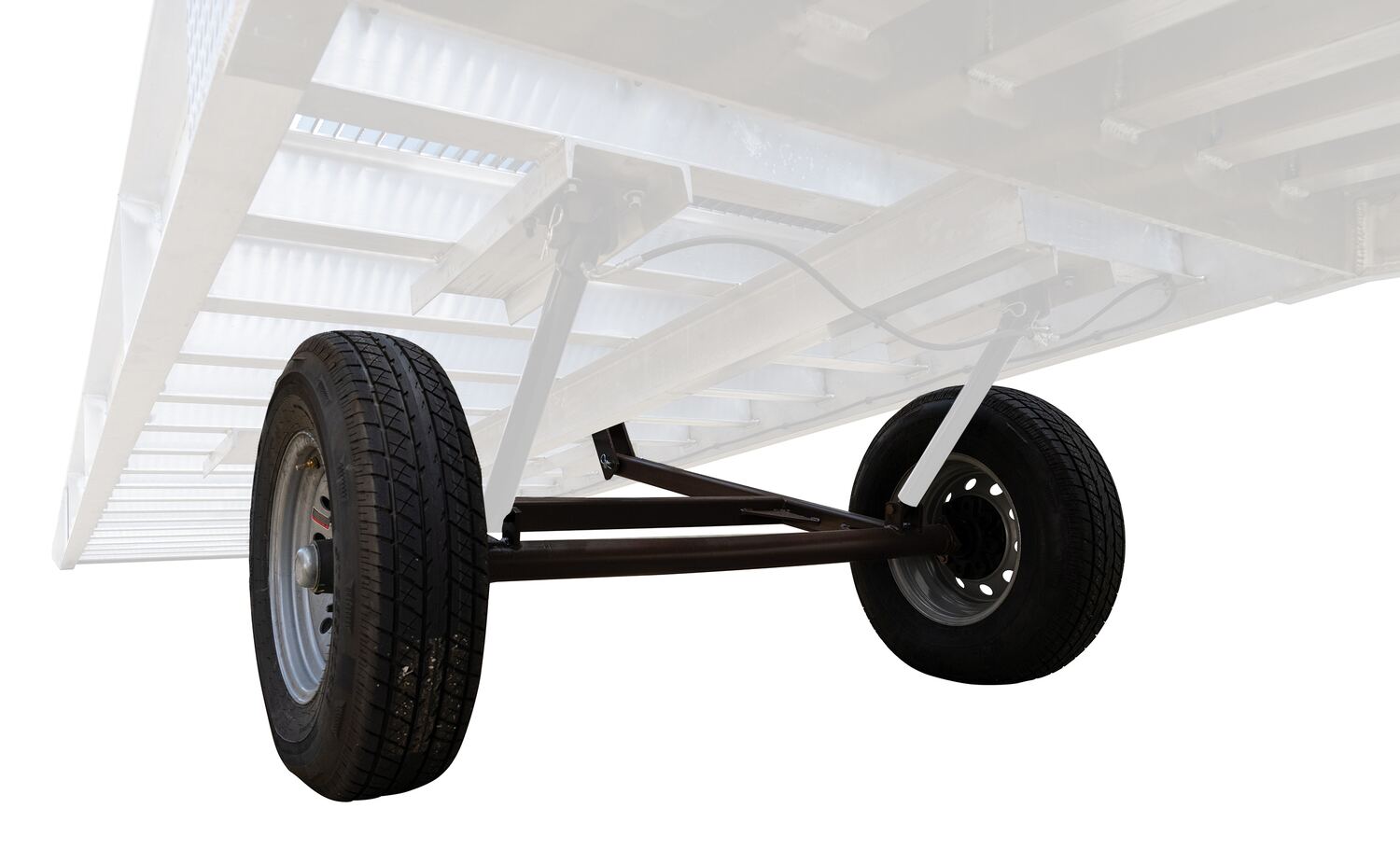 Optional Pneumatic tire option for an Aluminum Yard Ramp.