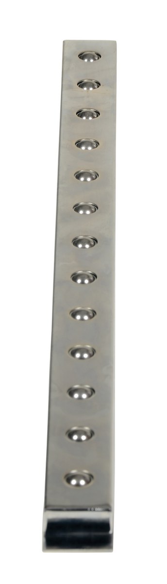 Steel Ball Transfer Strip 40 In. x 2-3/4 In. 75 Lb. Capacity SilverThe ball transfer strip is easy to install and simple to use. To install, simply line it up on your cart, table, or workstation and bolt on at each end. The standard finish is chrome.
