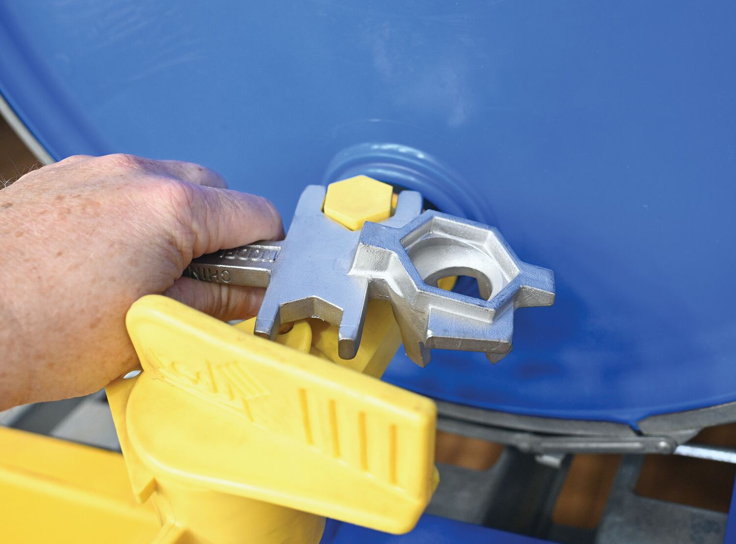 Stainless Steel Drum Bung Nut WrenchThis multipurpose, single ended, cast aluminum drum Bung nut wrench not only opens and closes drum bungs or plugs, they also work as a bung wrench, ring wrench and faucet wrench all in one! Wrench fits all types of industrial drum plugs and bungs in metal or plastic. These wrenches will not bend, break or chip. Patent pending.