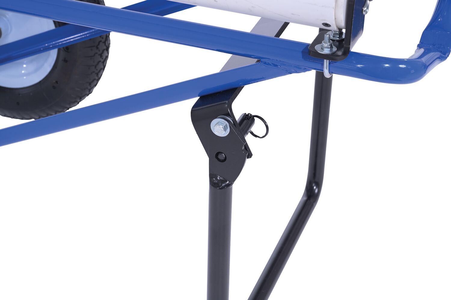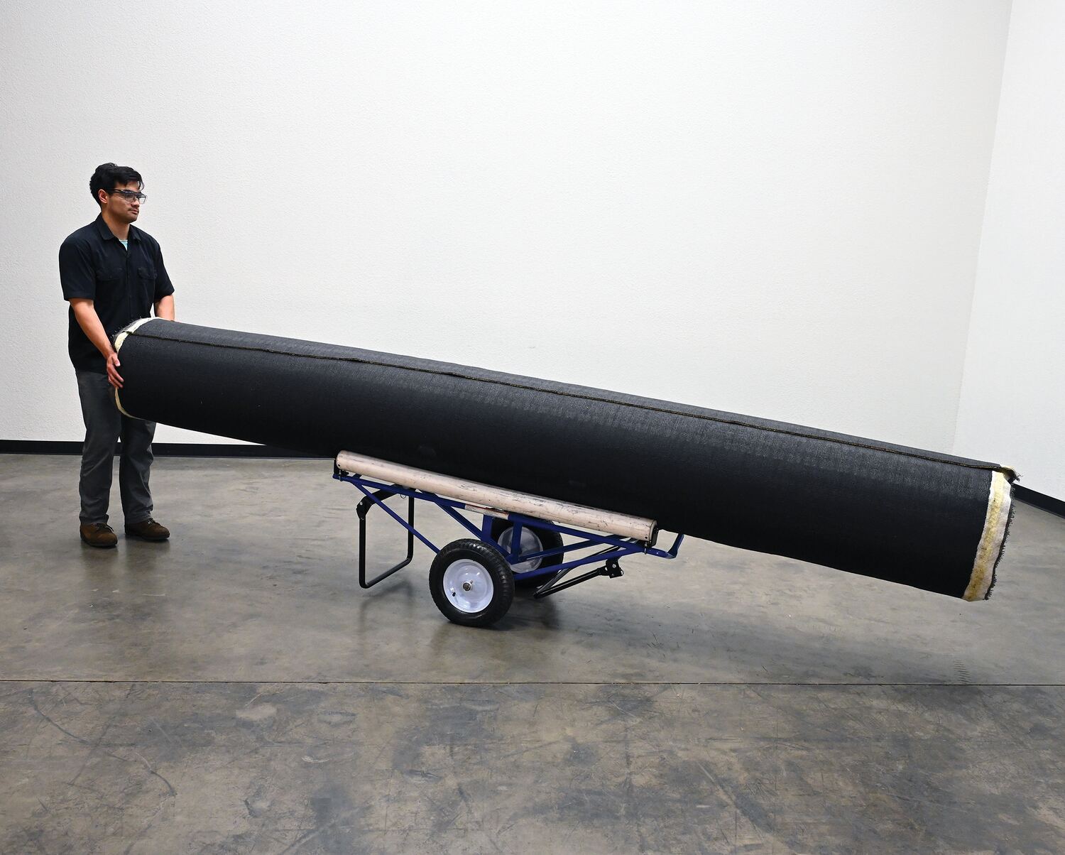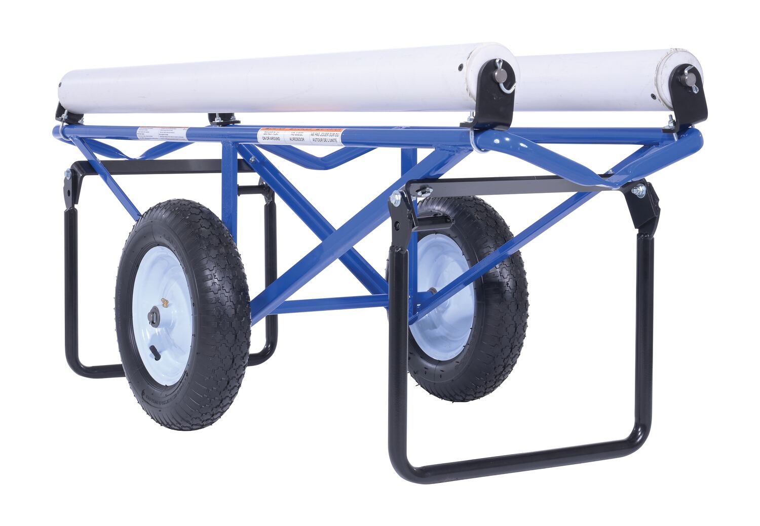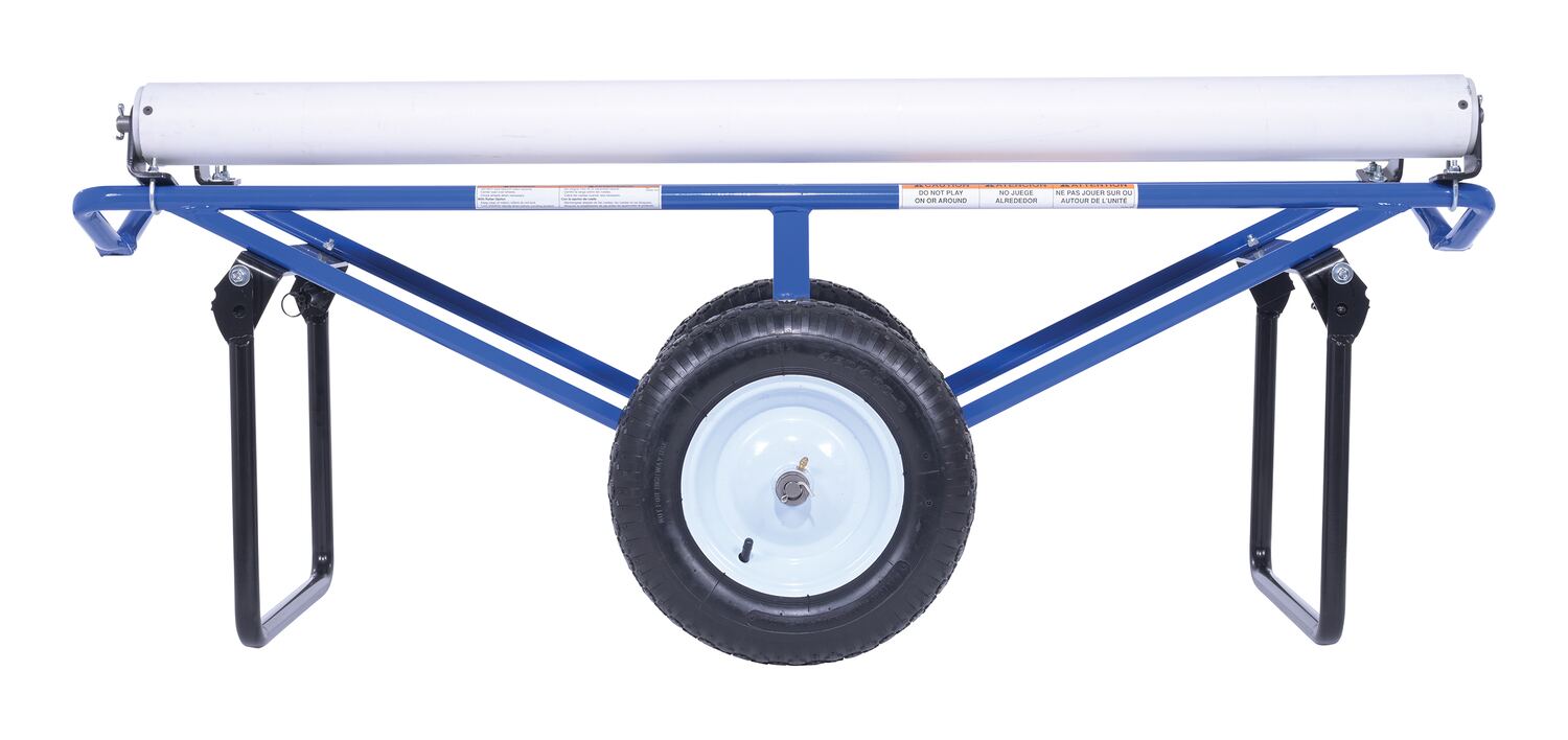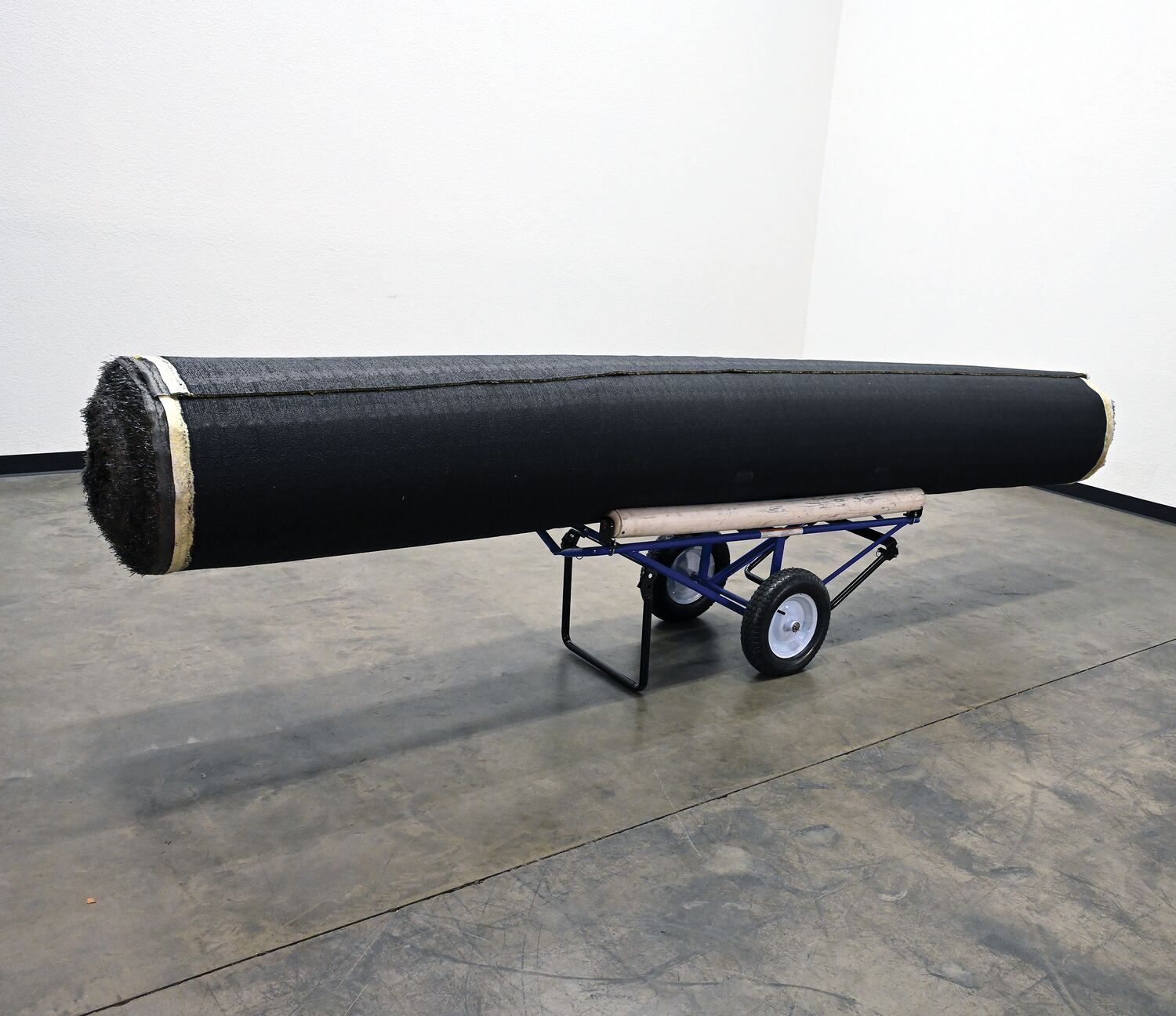 Portable Carpet Dispenser with Pneumatic Wheels 61 In. x 25-15/16 In. x 24-7/8 In. 500 Lb. Capacity BlueThis portable carpet dispenser minimizes lifting and pulling. Slide carpet onto rollers. Carpet unrolls as needed. Retractable legs stabilize the cart. Welded steel construction with powder coat blue finish.