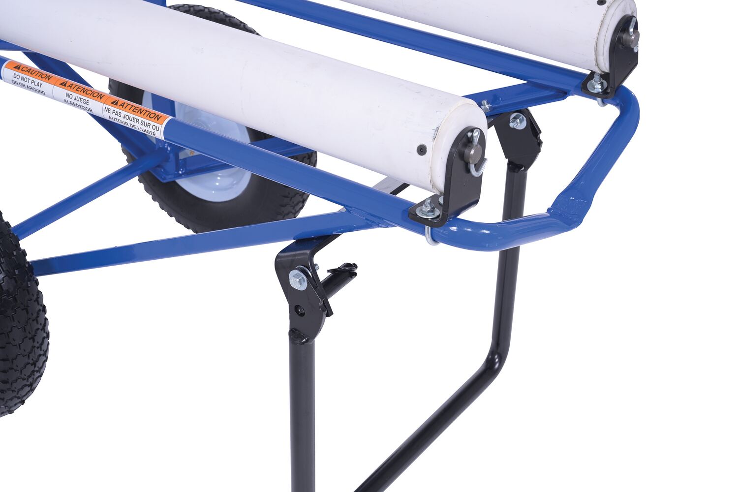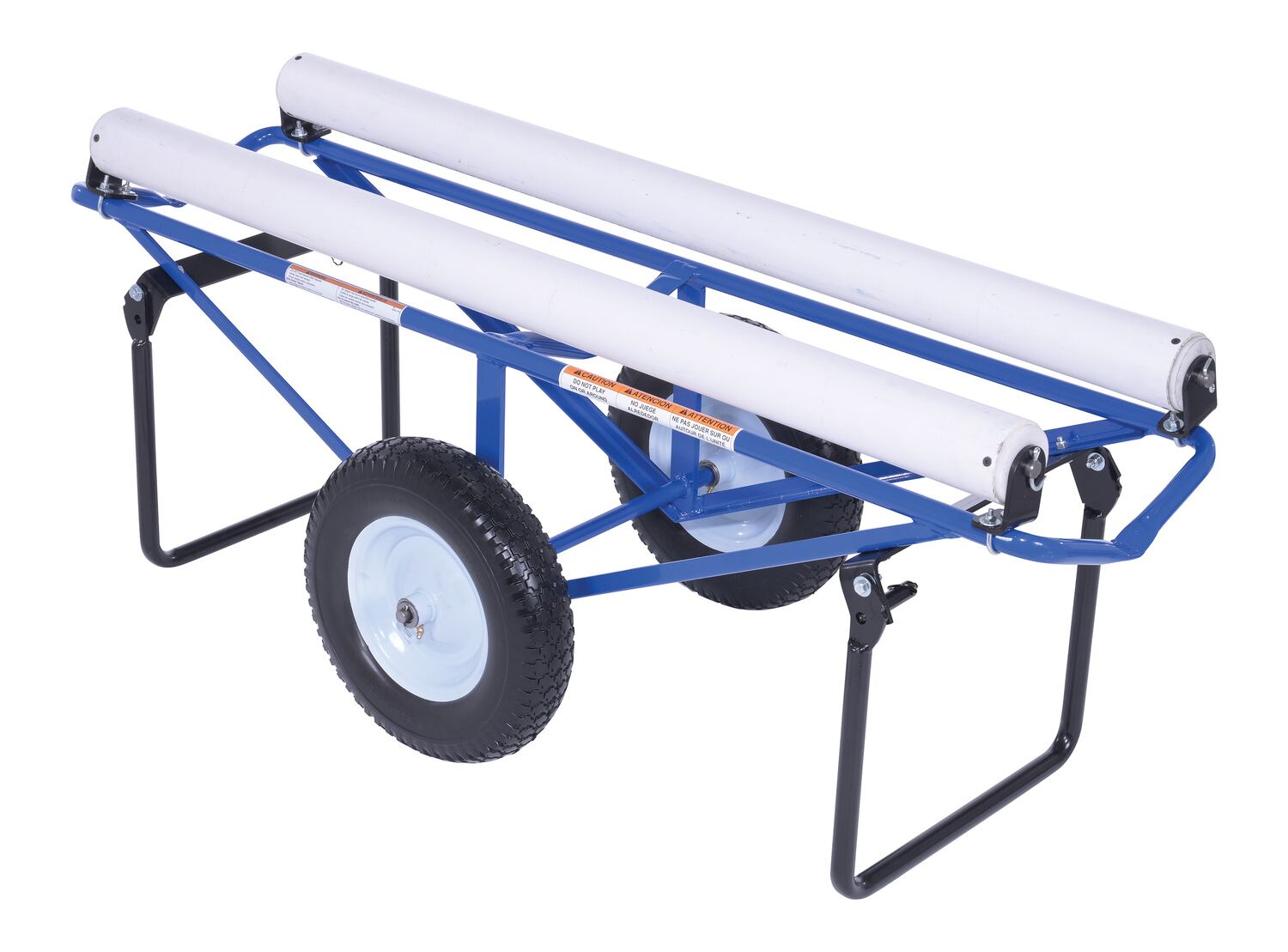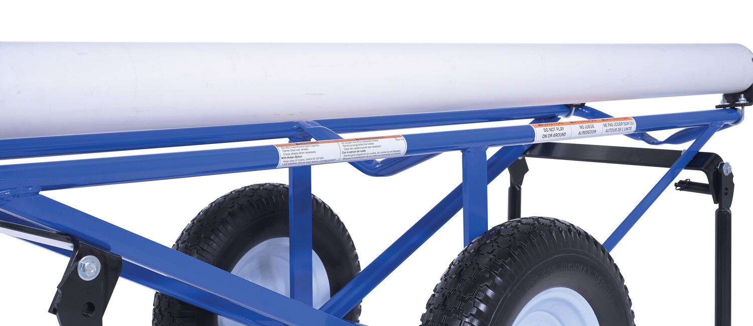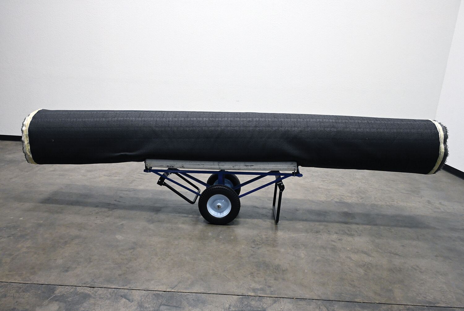 Portable Carpet Dispenser with Foam Filled Wheels 61 In. x 25-15/16 In. x 24-7/8 In. 500 Lb. Capacity BlueThis portable carpet dispenser minimizes lifting and pulling. Slide carpet onto rollers. Carpet unrolls as needed. Retractable legs stabilize the cart. Welded steel construction with powder coat blue finish.