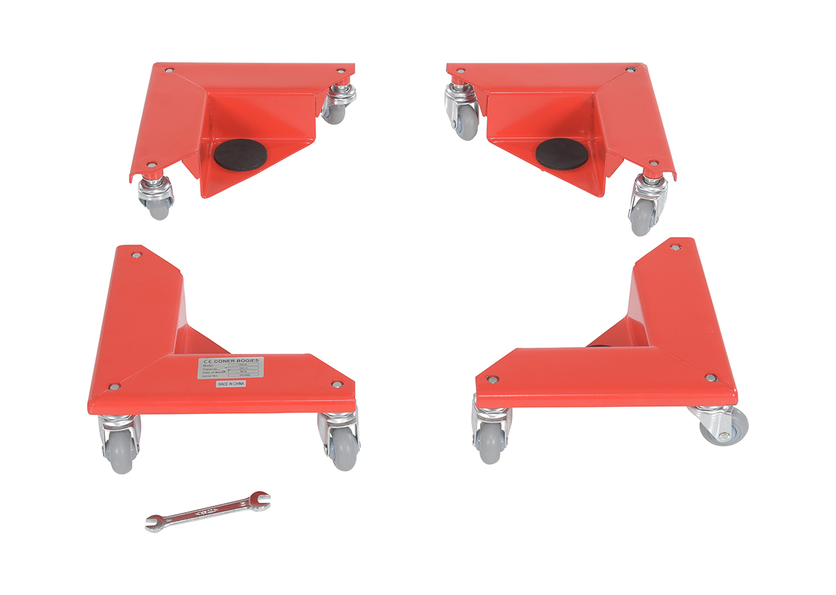 Steel Corner Mover Dolly 4 Pack 300 Lb. Capacity RedA corner mover allows the user to move and get into spots that would otherwise be impossible. The three sided unit allows rectangular and square item to be easily maneuvered. A smooth powder coated finish allows for simple handling and provides long lasting surface stability. The attached casters let the user turn in the direction that best suits the current setting.