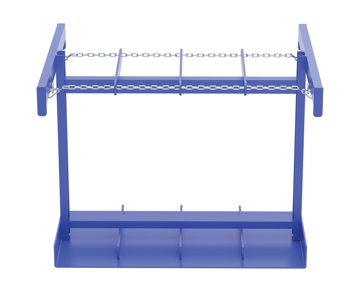 Steel Cylinder Caddy 8 Maximum Cylinders 800 Lb. Capacity BlueA Cylinder caddy transports cylinders safely with this fork mounted style. This unit comes complete with safety chains to secure the cylinders in place. The optional caster kit allows for portability without the need of a fork truck or pallet truck.
