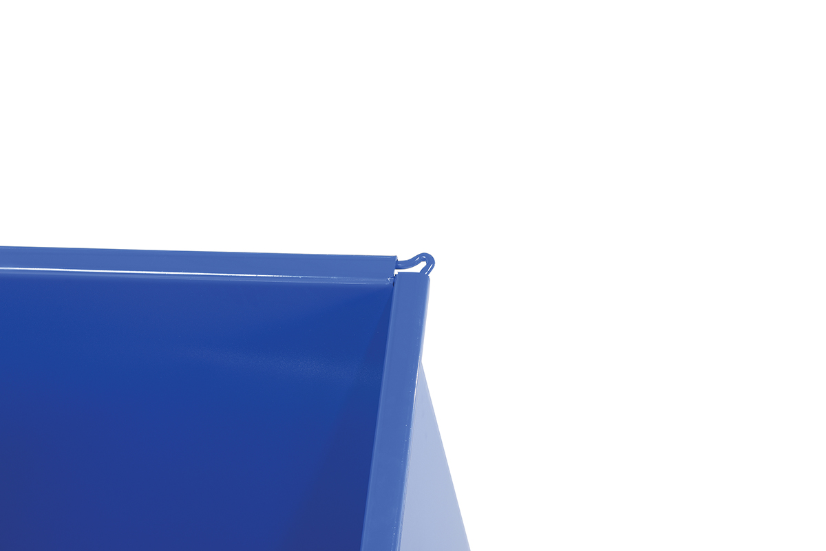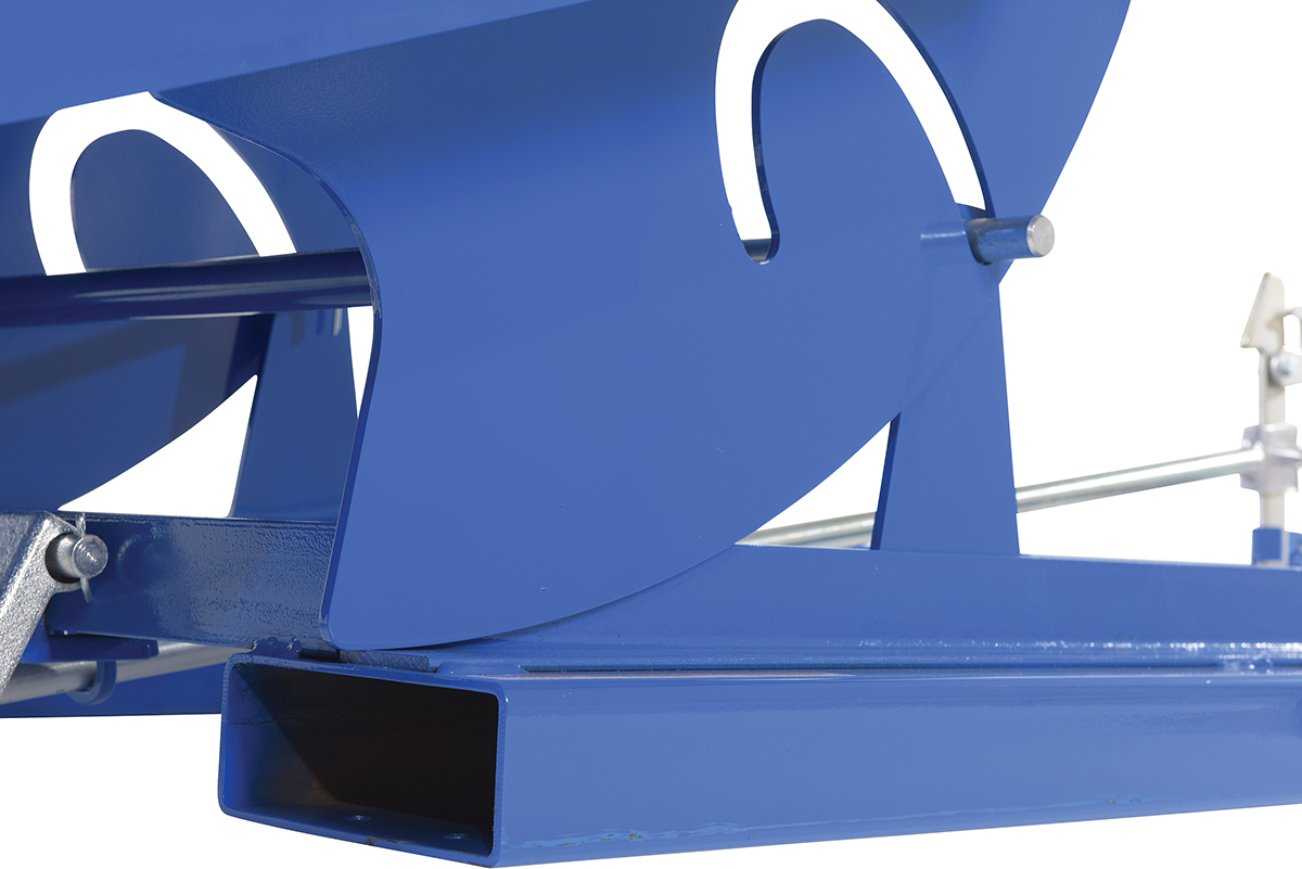 Steel Heavy Duty Self Dumping Hopper 1-1/2 Cubic Yard 6000 Lb. Capacity BlueThis Heavy Duty self-dumping steel Hopper with bumper release automatically dumps when bumper release contacts the front of the dumpster. Hopper returns to an upright and locked position automatically after it dumps. Also includes a cable that may be operated from the seat of the fork truck to manually dump the hopper. The included safety restraint should be properly secured to a fork truck before dumping. (Length dimension is measured at top of chute.) Self-dumping hoppers facilitate compliance with OSHA general industry rule 29 CFR 1910.178(m)(5)(iii) by allowing lift truck operators to remain at the controls of their truck throughout the dumping process.